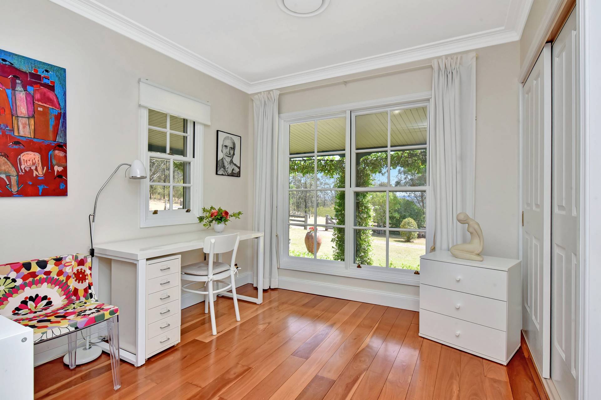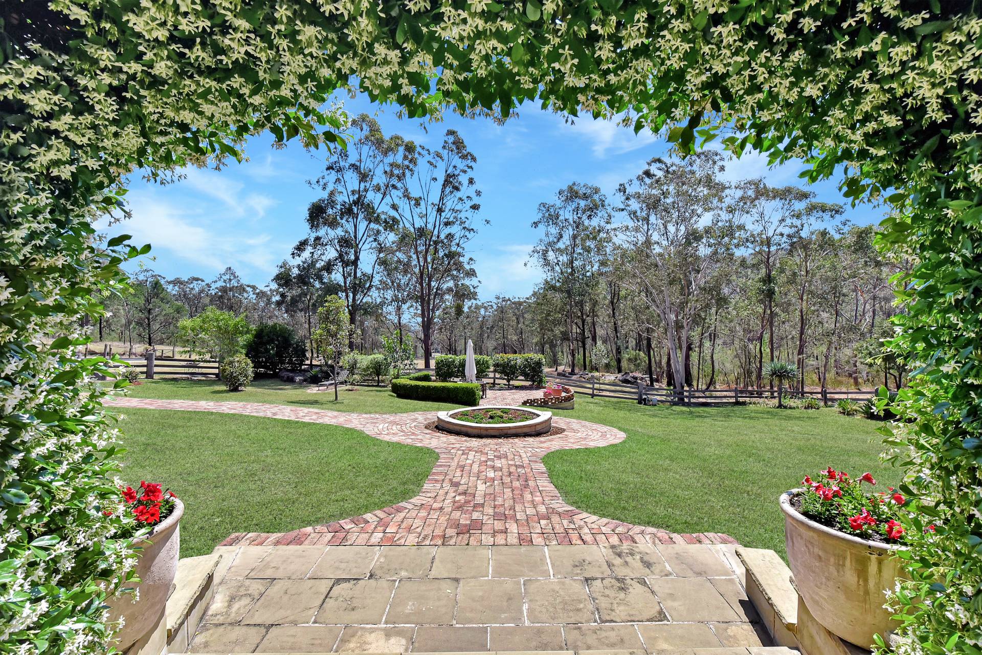 With easy 2wd tar sealed road access into the property you make your way up a scenic driveway to where you are greeted by a timber post and rail fence entryway. Leading the way along a meandering path to a gorgeous north facing homestead, characterised with a rendered brick façade, the home exudes a charm all of its own! Pretty as a picture the Tallow wood and spotted gum wrap around verandahs is picture framed by sculptured ever-green star jasmine. As you step inside the homestead you are greeted by light filled rooms. Sydney hardwood Blue Gum flooring compliments the large open living areas. A built-in slow combustion fire place draws your eye to the spacious loungeroom area where you can imagine yourself in the winter months gathering around with family and friends. A gourmet kitchen has all the bells and whistles with stone bench tops, gas stove, dishwasher, ample overhead and under bench storage cupboards and stainless-steel quality appliances. French doors and windows create the perfect ambiance throughout the home.