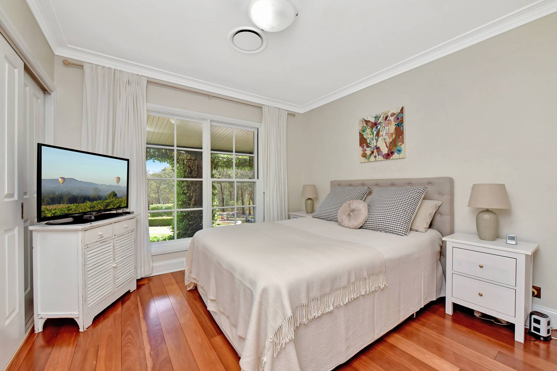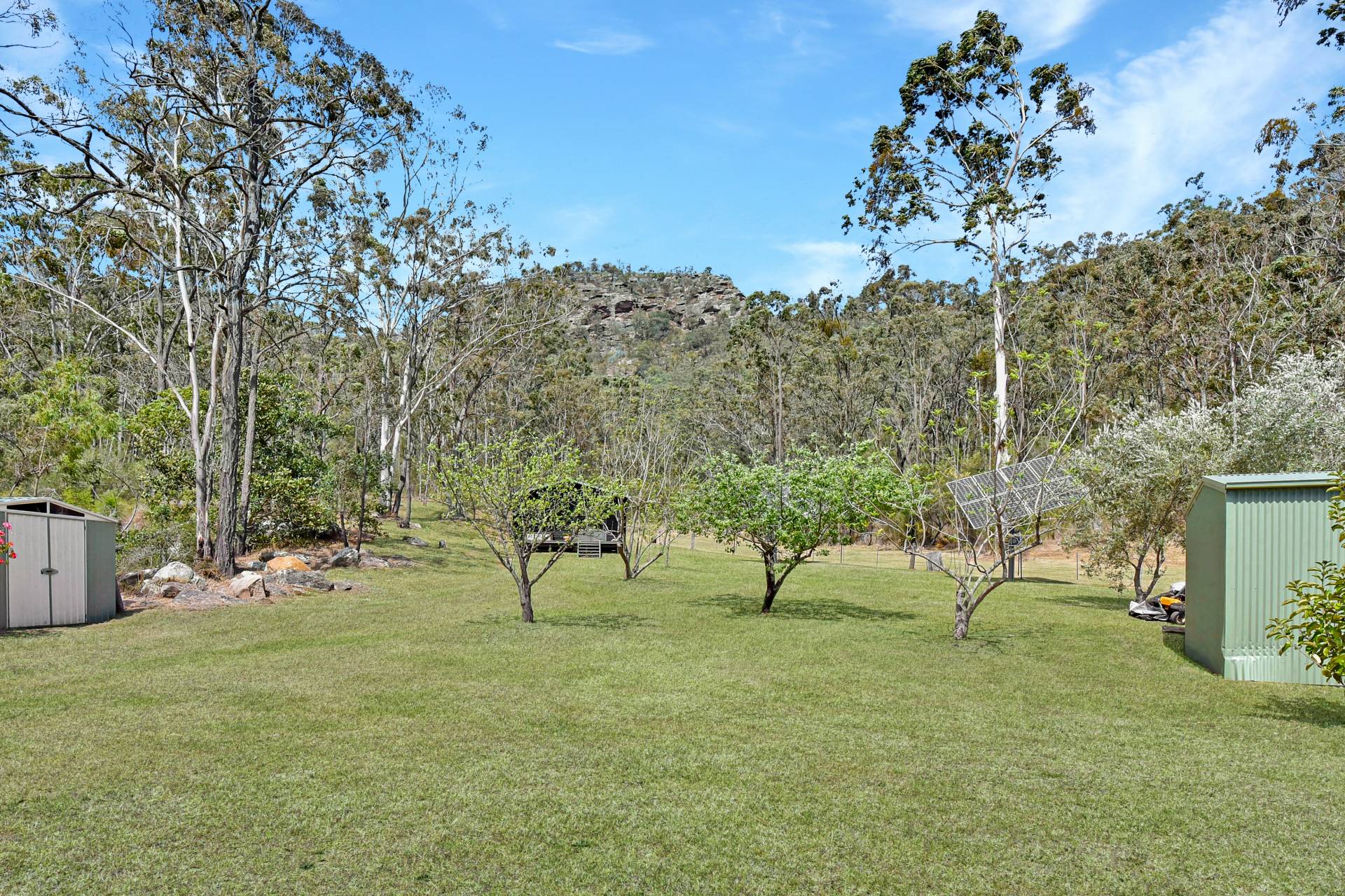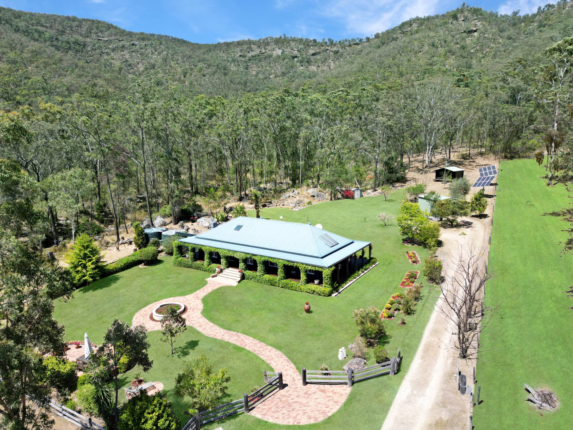 The impressive, manicured grounds provide a place of solace and tranquilness where you can enjoy the delightful outdoor garden areas. Many varieties of fruit trees, deciduous trees, native shrubs and flowering plants have been strategically planted into the well-designed landscape, watered by a phone-controlled irrigation system with an automatic timer. Whilst there is mains power connected the property has the benefit of a rotating 3KW solar system and solar hot water, significantly reducing power bills.
