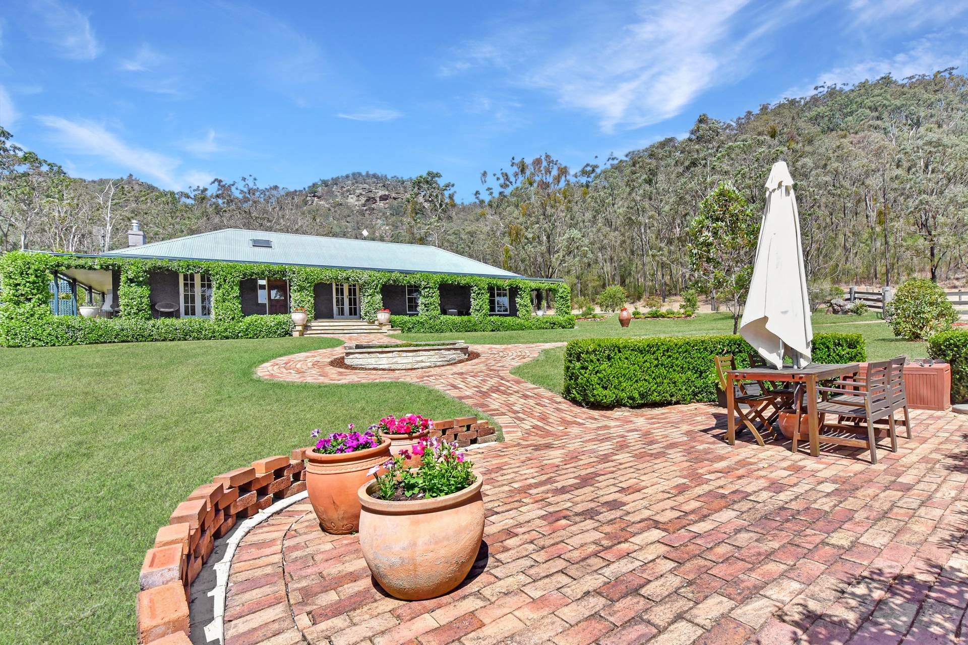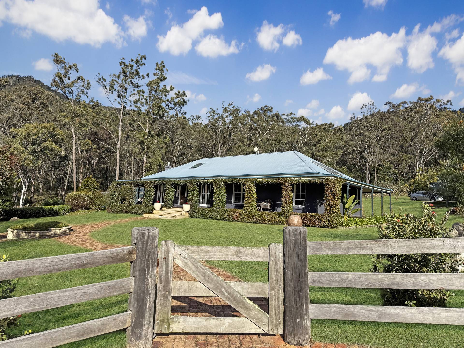 Nestled privately at the stunning foothills of a picturesque mountain range, this ‘Country Masterpiece’ offers an exquisite country lifestyle a lot of us can only dream of. This 12.14 hectare (approx. 30 acre) rural holding blends a mix of arable pastured acres with natural Australian bushland. Adjoining the beautiful Wollombi brook where you can enjoy your own waterfront sanctuary, fenced grassy acres are the perfect place for a hip camp venture, agricultural activities or simply to run a few head of cattle or livestock of your choosing. A PID water licence of approx. 1.5 megalitres attached to the property assures year-round water supply to the property and feeds a large dam.