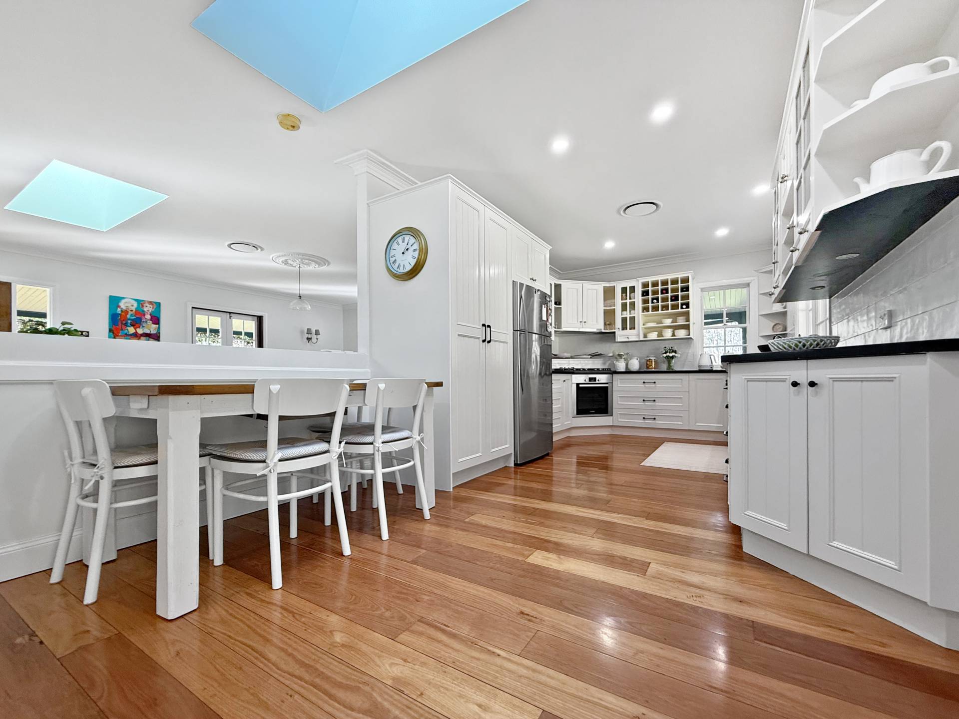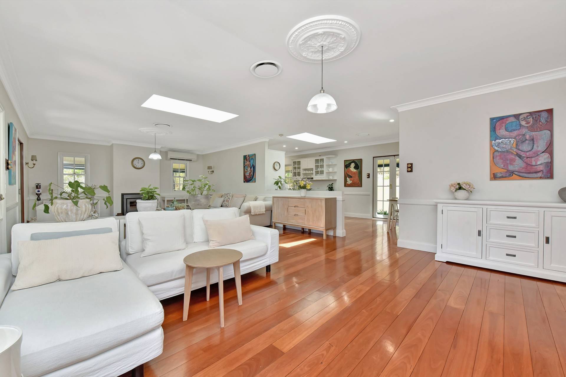 Many fine features include high 2.4m ceilings, skylights, ducted r/c air-conditioning, additional split system r/c air conditioning, gas heater connection, ornate rosette plasterwork and decorative cornicing.