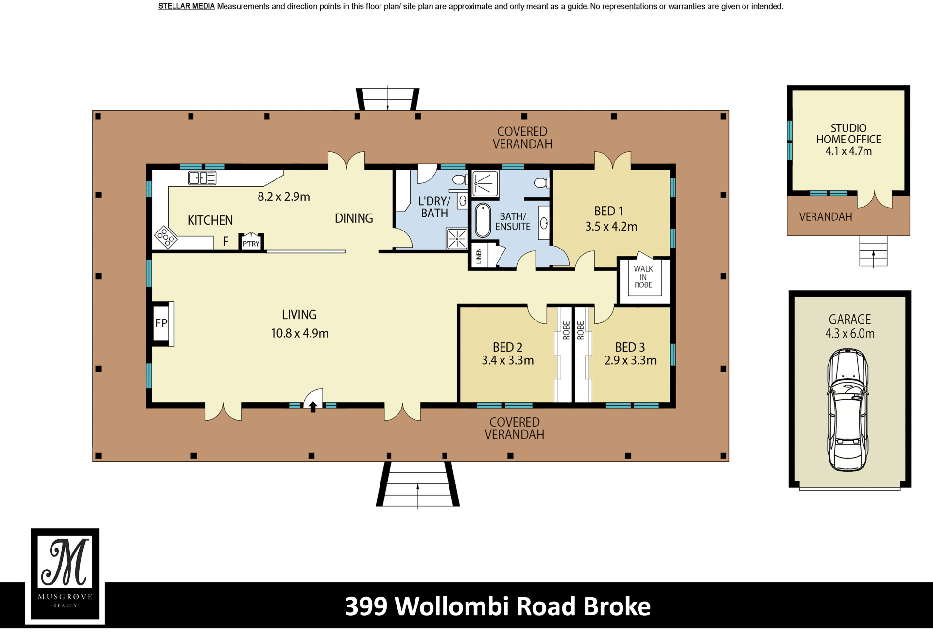 A separate studio building with verandah is the perfect home office/potential guest studio with power connected, split r/c air conditioning, insulated & internet connection. A single garage and two other sheds provide car accommodation & storage for your farm equipment needs. There are two water storage tanks (approx. 25,000 litres each).
