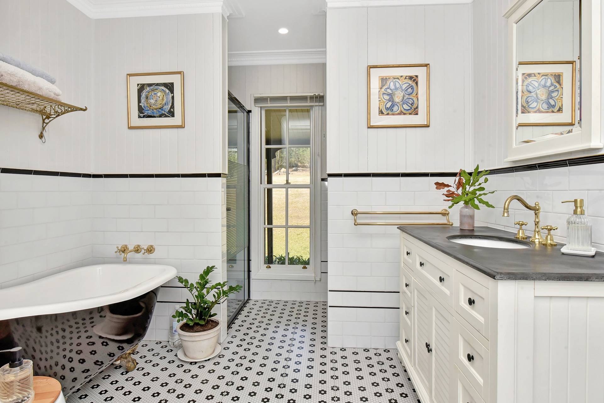 Make your way up a central hallway to three well sized bedrooms, all of them offering a view to the delightful outdoor garden surrounds. The master bedroom with walk in robe and both secondary bedrooms having built in robes. Two stylishly designed bathrooms blend in perfectly with a touch of classical elegance. The main bathroom features a clawfoot bath tub, separate shower and segregated toilet. A well designed second bathroom integrates a laundry facility, plenty of cupboard space and has direct access outside onto the verandah. For anyone having the need for a fourth bedroom, there is plenty of internal floor space that could very easily accommodate an additional bedroom if desired with a straightforward alteration.