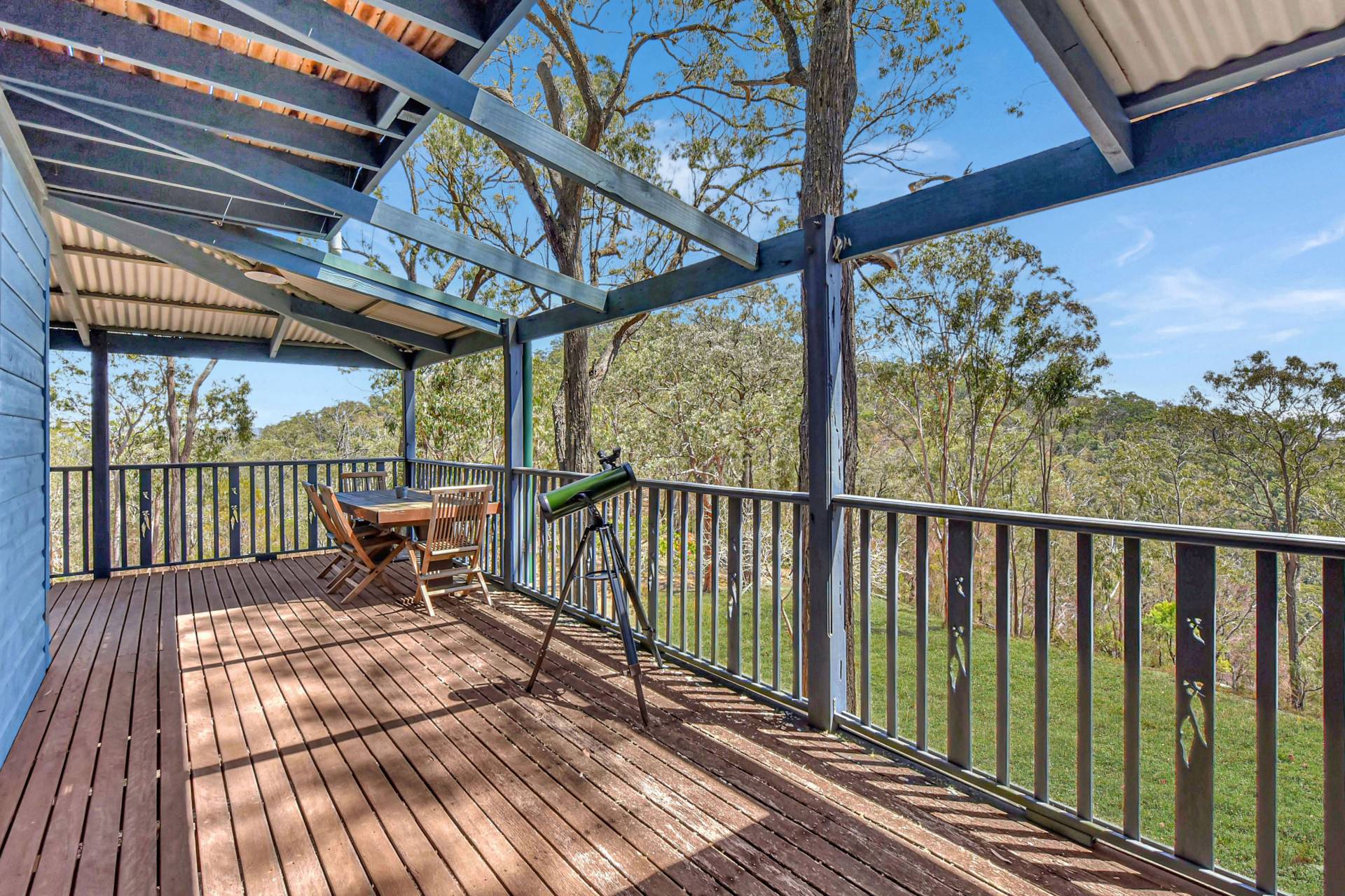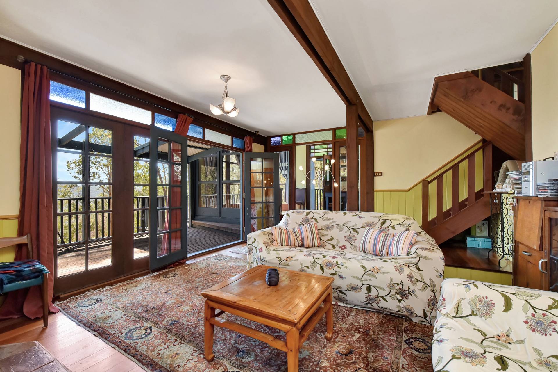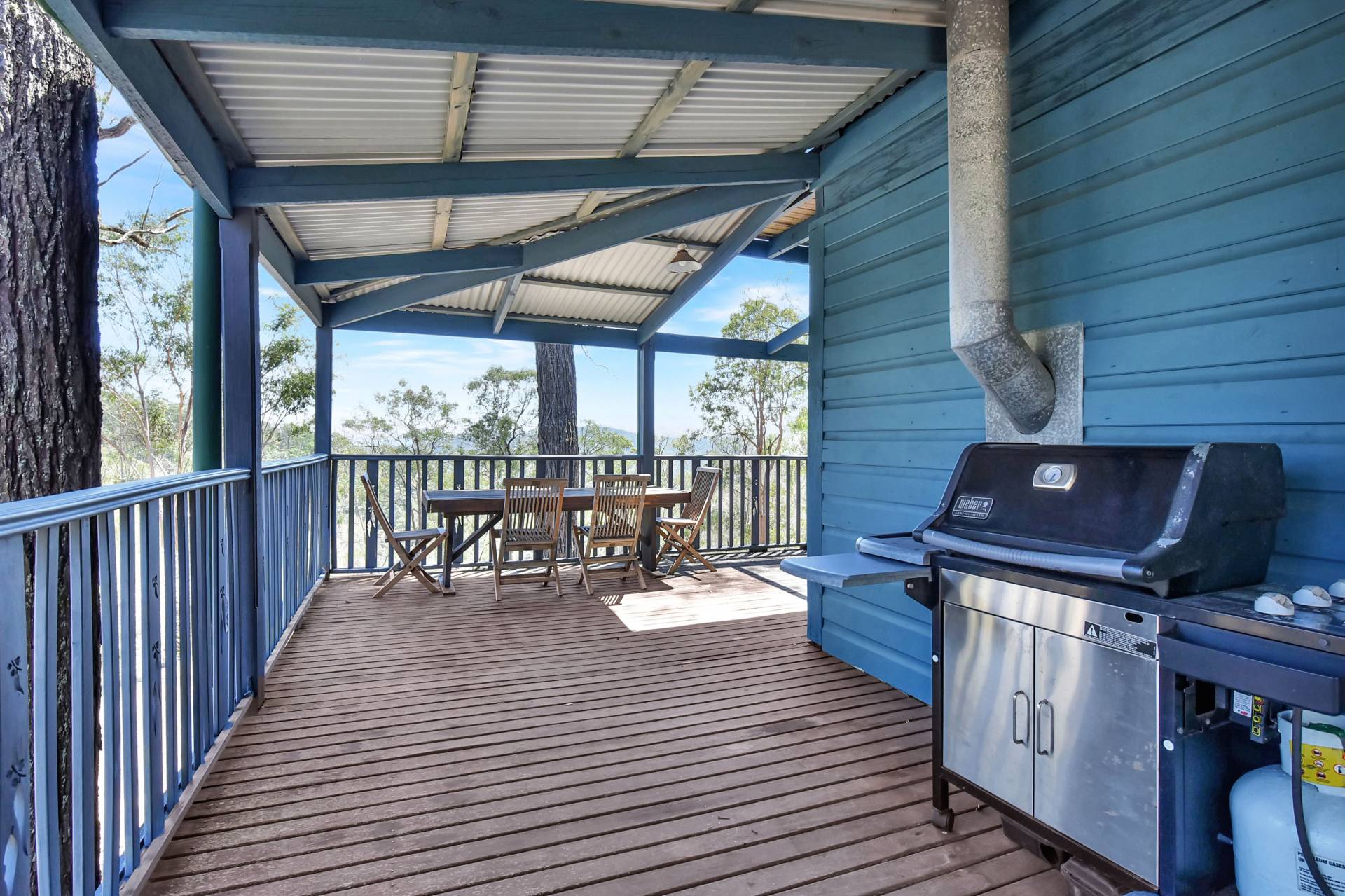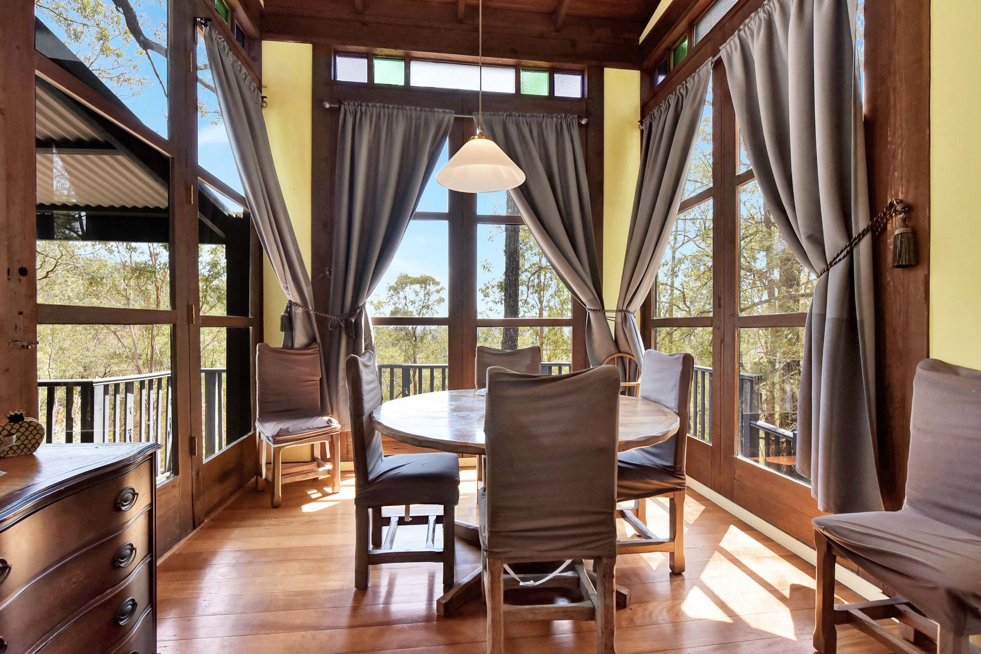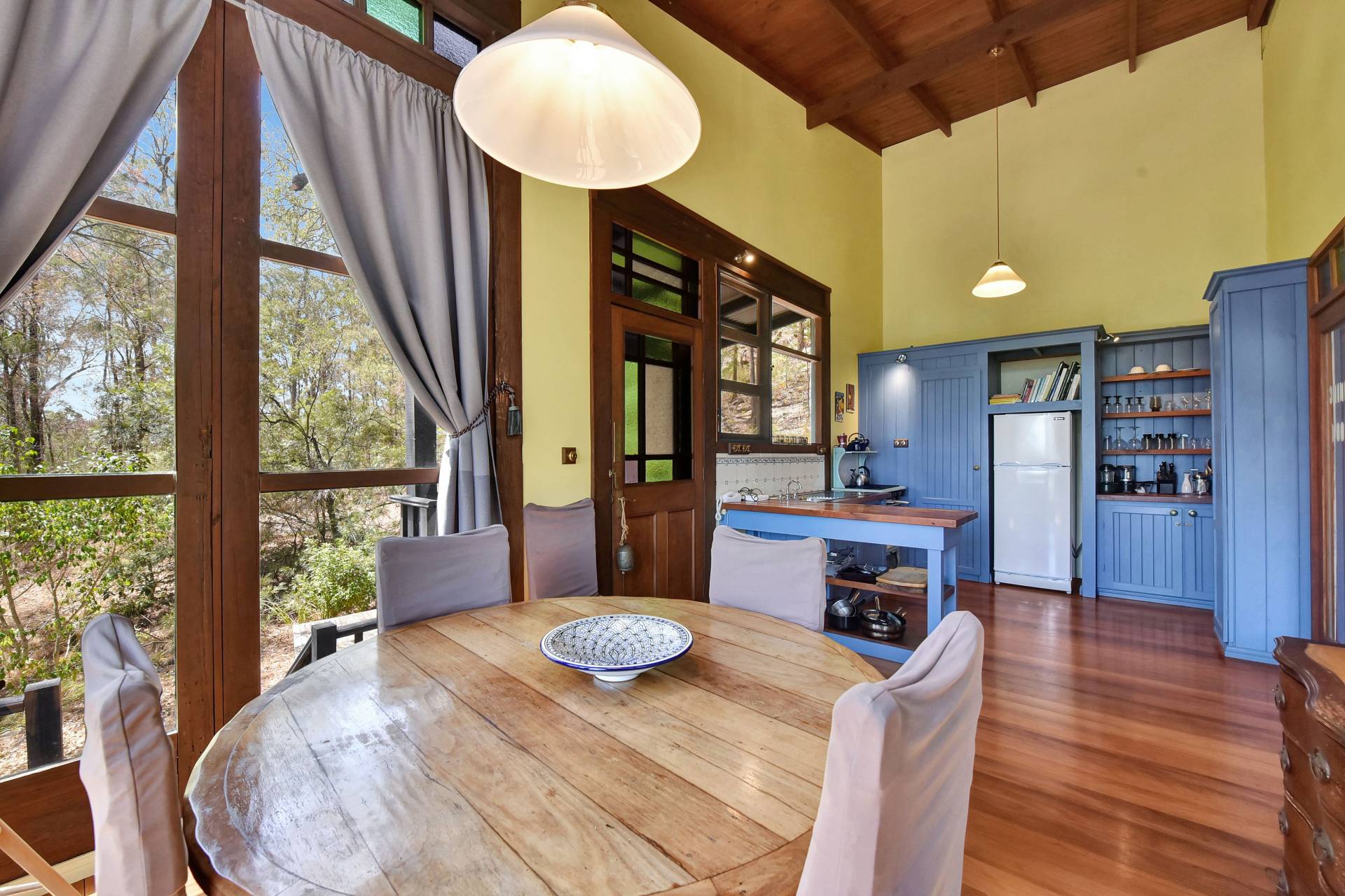 Perched high on a hill ‘Pemmenunna’ offers exquisite views and has been nestled privately on approximately 34.75 hectares (85.86 acres) of land, with only the birds and wildlife as your Neighbours! The two-story character home is fully off grid with a self-sufficient solar system, is north facing and has many quirks throughout. An upstairs master bedroom takes in the views and opens onto its own verandah. A second bedroom is located downstairs, has built in cupboards and large windows, looking out over a dam. Spacious open plan living areas adjoin a timber kitchen equipped with a gas stove and gas fridge. The dining area is an absolute highlight, featuring an atrium light filled space with many windows allowing the outside to come in. For the winter months there is a slow combustion fireplace and high raked ceilings help cool you down in summer. The bathroom has a beautiful clawfoot bath, a separate shower, stunning chandelier light fitting, timber features and gorgeous lead light windows.  An internal laundry with an extra toilet has access straight out the back door and a wraparound verandah takes in the north facing views, perfect for all seasons.