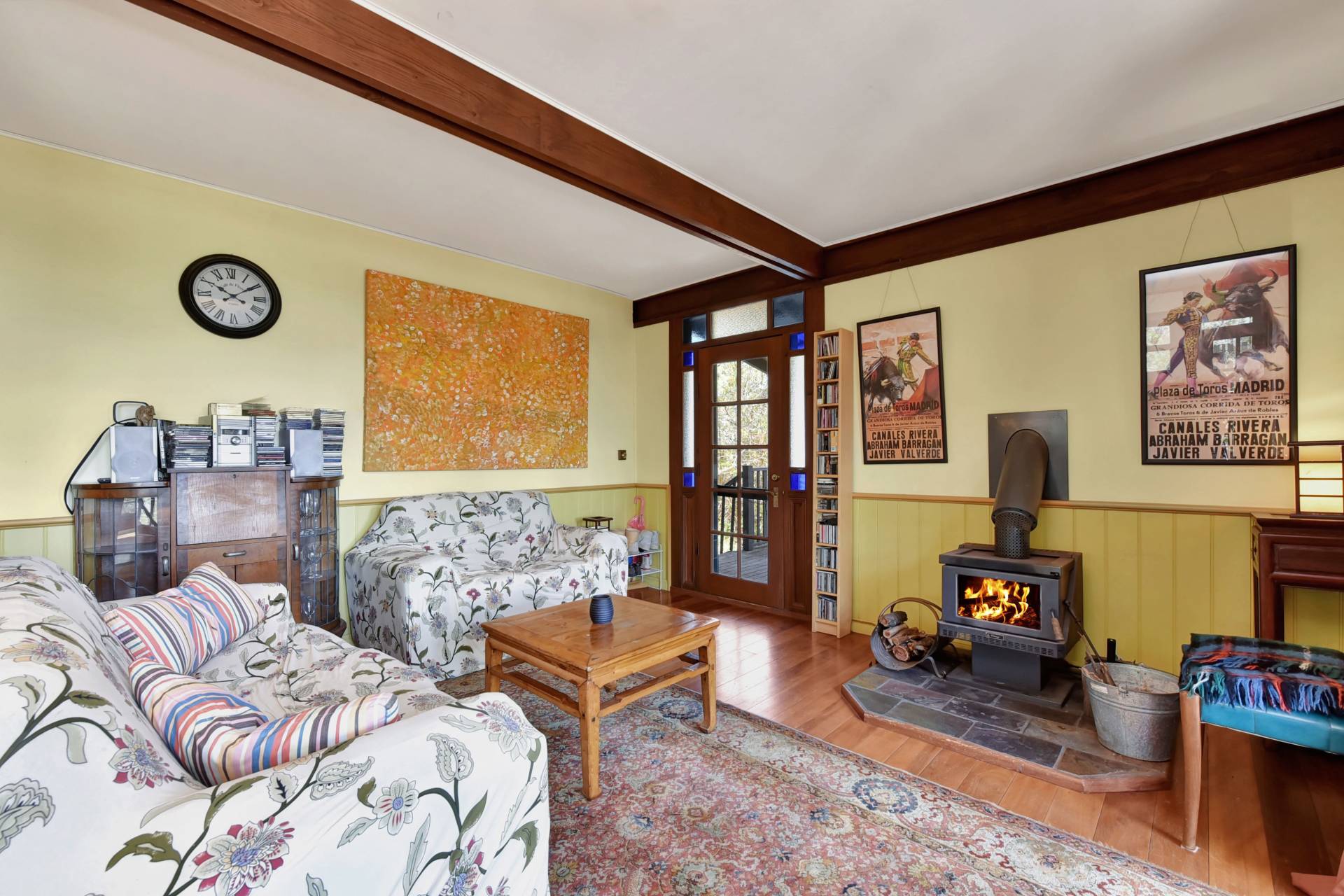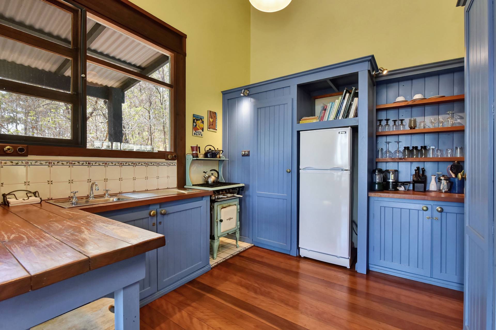 The home features hardwood timber floors, stained glass windows, a gas hot water system, two gas powered refrigerators (included with the sale) and domestic water tanks including a header tank. The property has a transpiration onsite sewerage system.