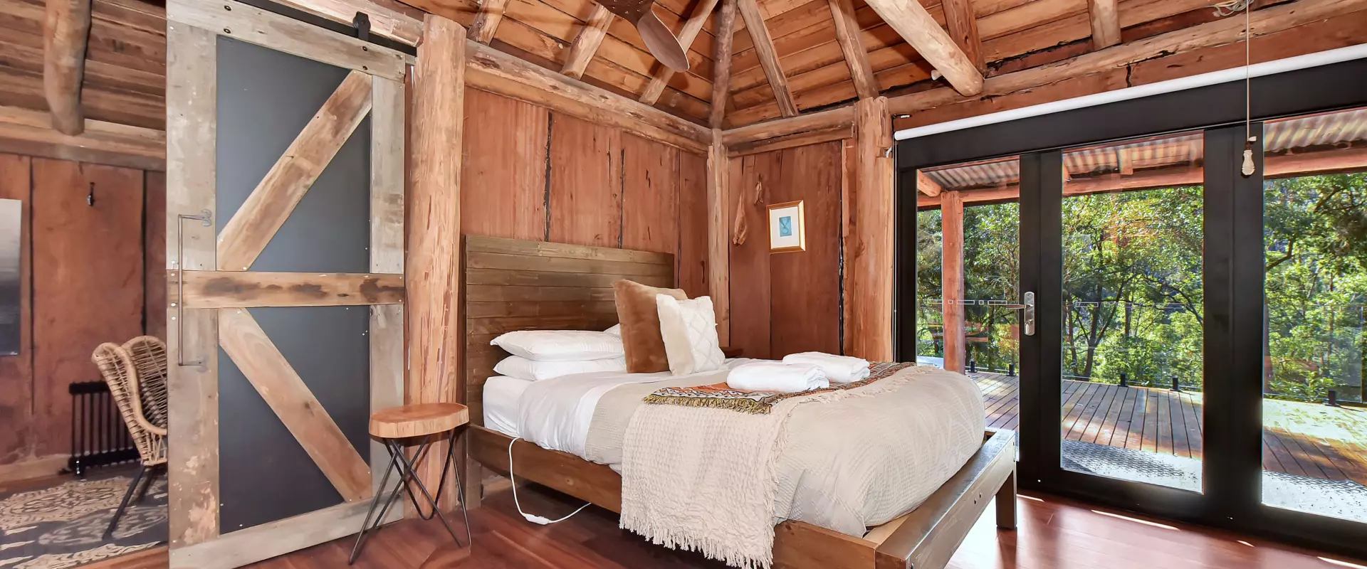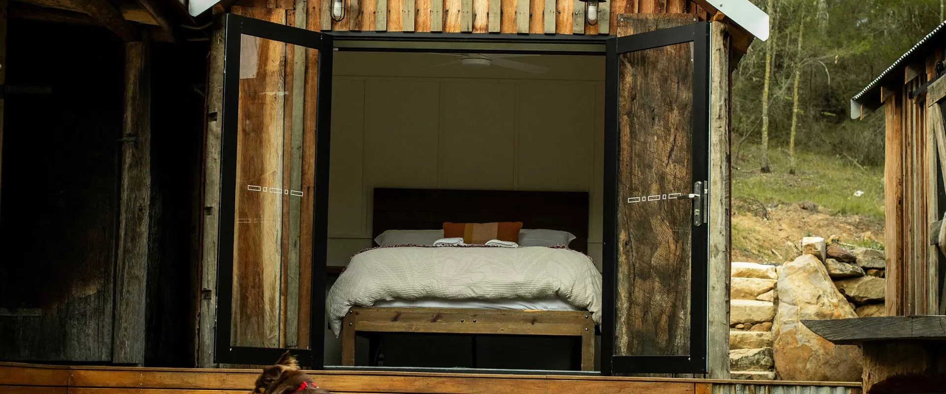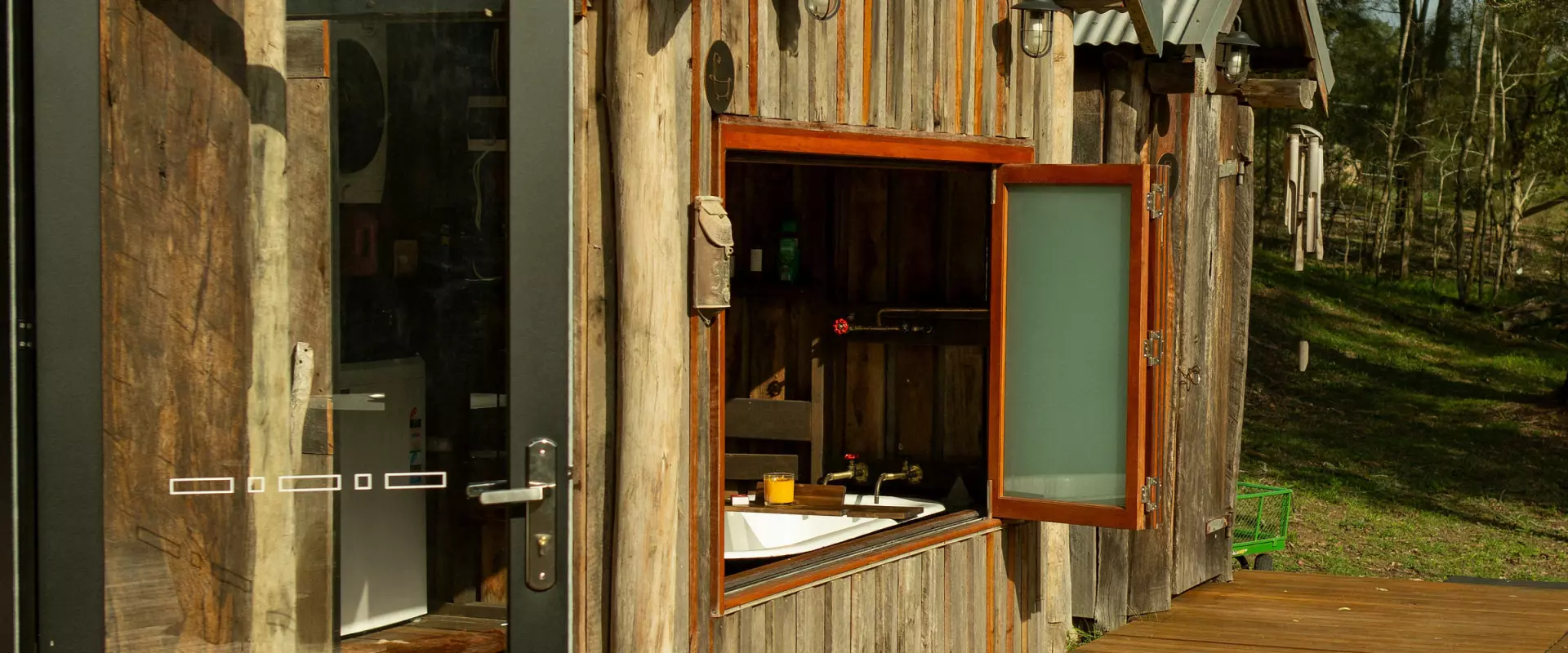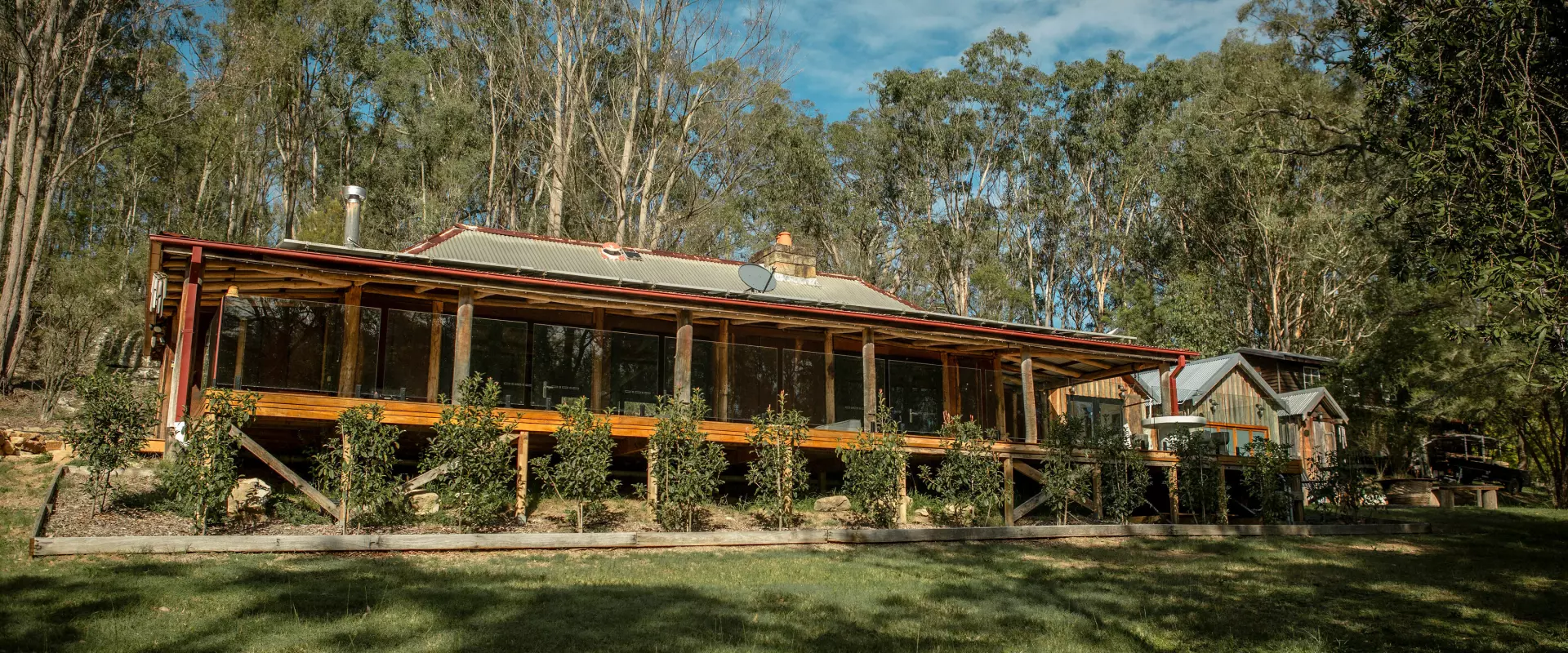 The three bedrooms all have access out onto a huge entertainment deck which looks over the grassy plateau surrounds, fringed with natural bushland and stunning rock formations. There is a main bathroom with separate bath, shower and toilet plus an additional outside bath house with another shower, toilet and a large, gorgeous window which opens out, letting in the views of nature as you soak away in a big free-standing bathtub!