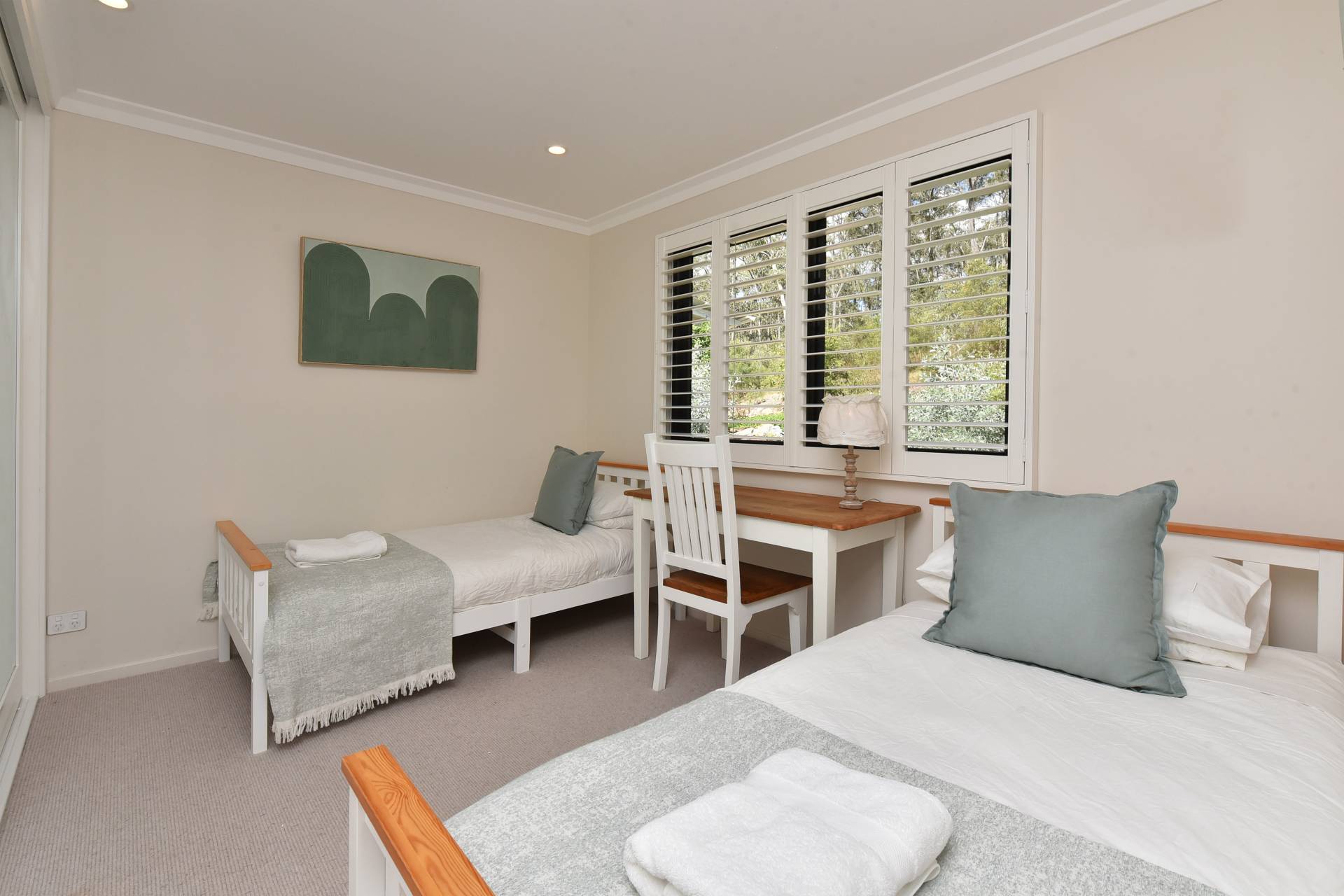 A separate shed also makes a great studio or office space with timber floor, fireplace and sliding doors capturing that view again.