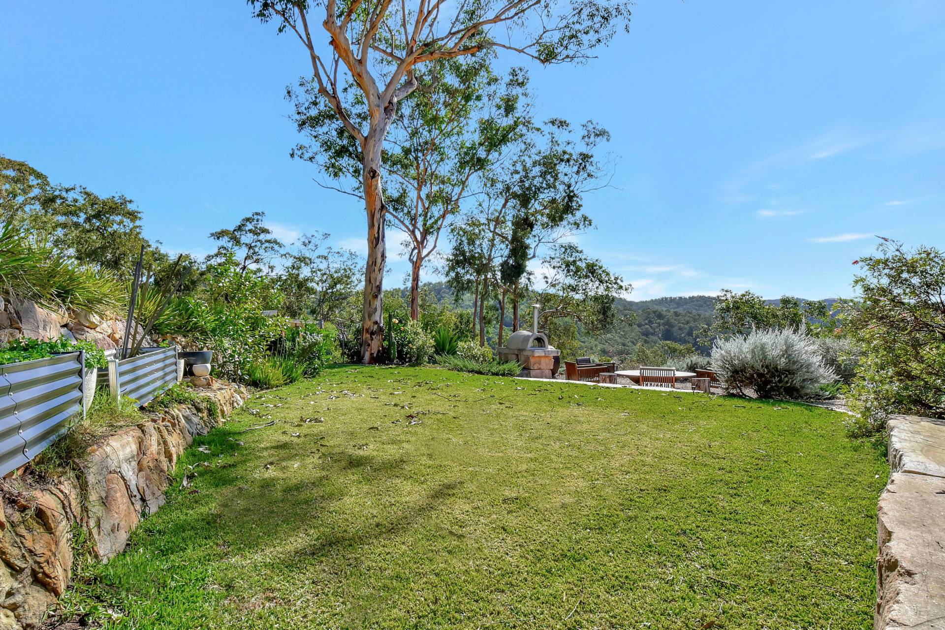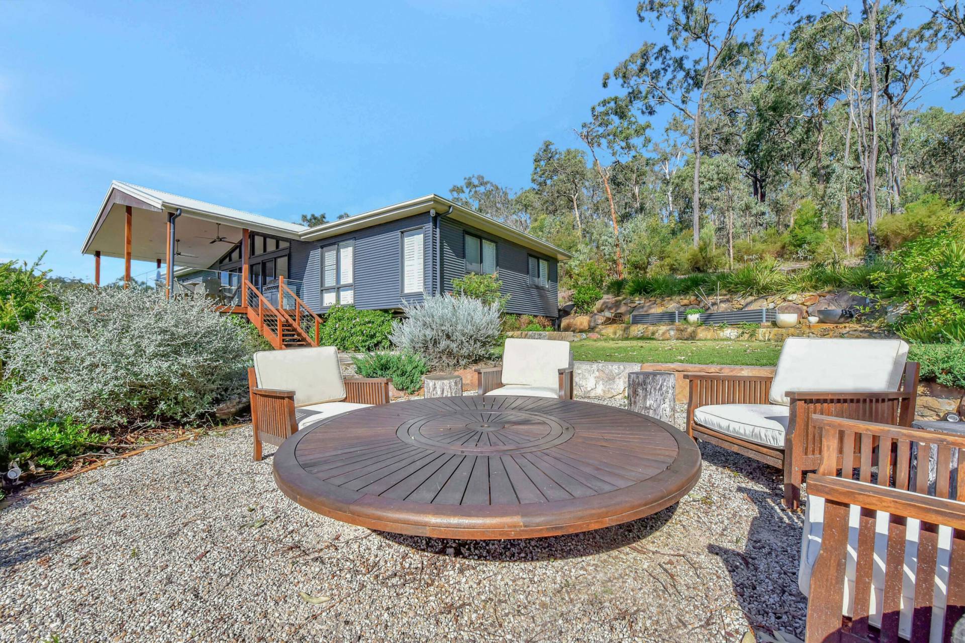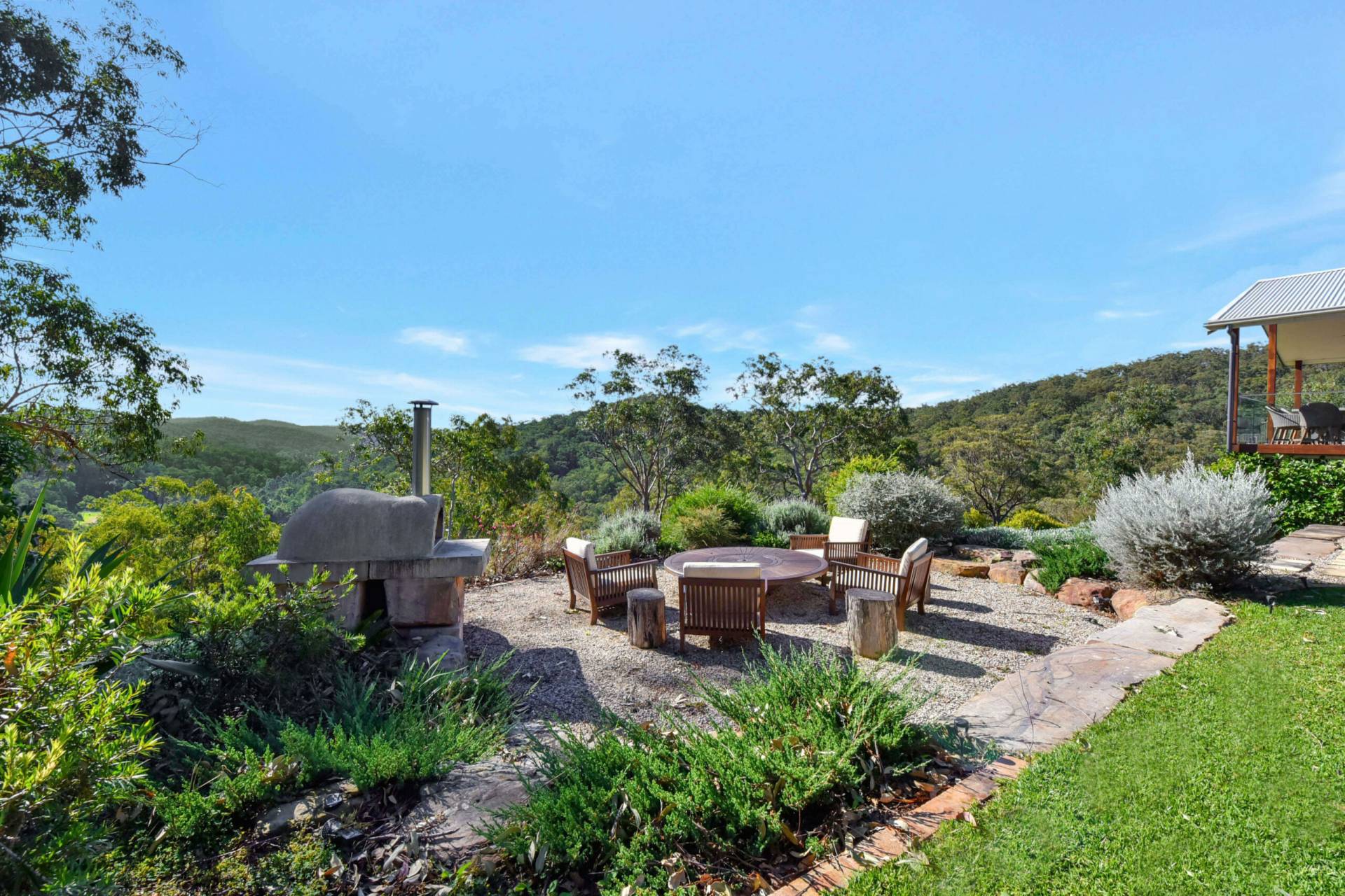 One of the many highlights of the property is a beautifully landscaped firepit area with a pizza oven perfect for entertaining under the stars on a clear night. The entire garden landscape was designed and built by the same landscape architect that created John Singletons iconic 'Saddles' at Mount White, well known for its beautiful native gardens.