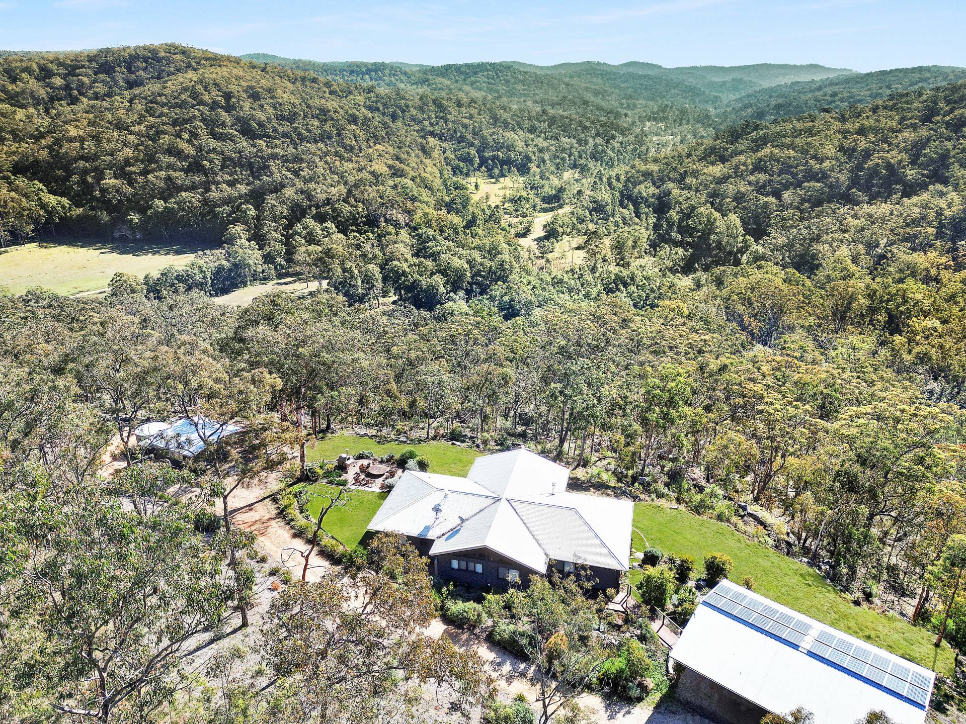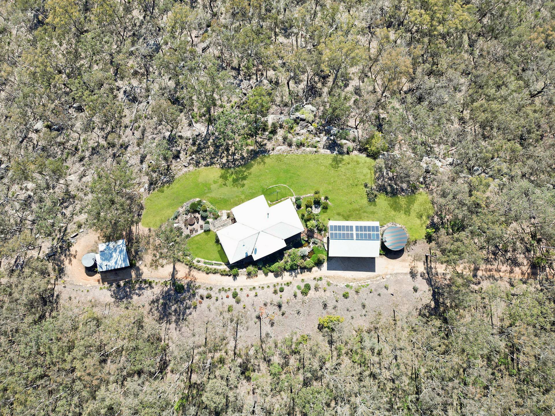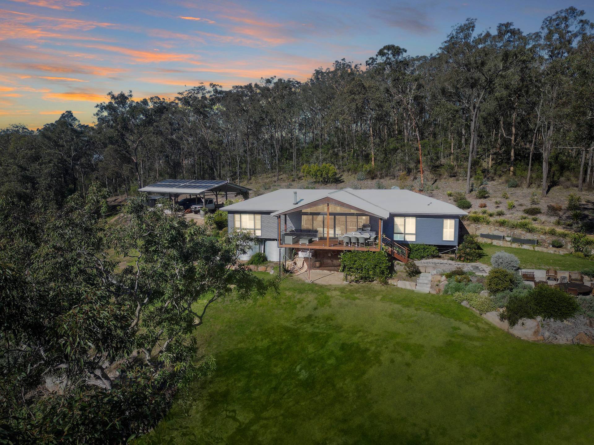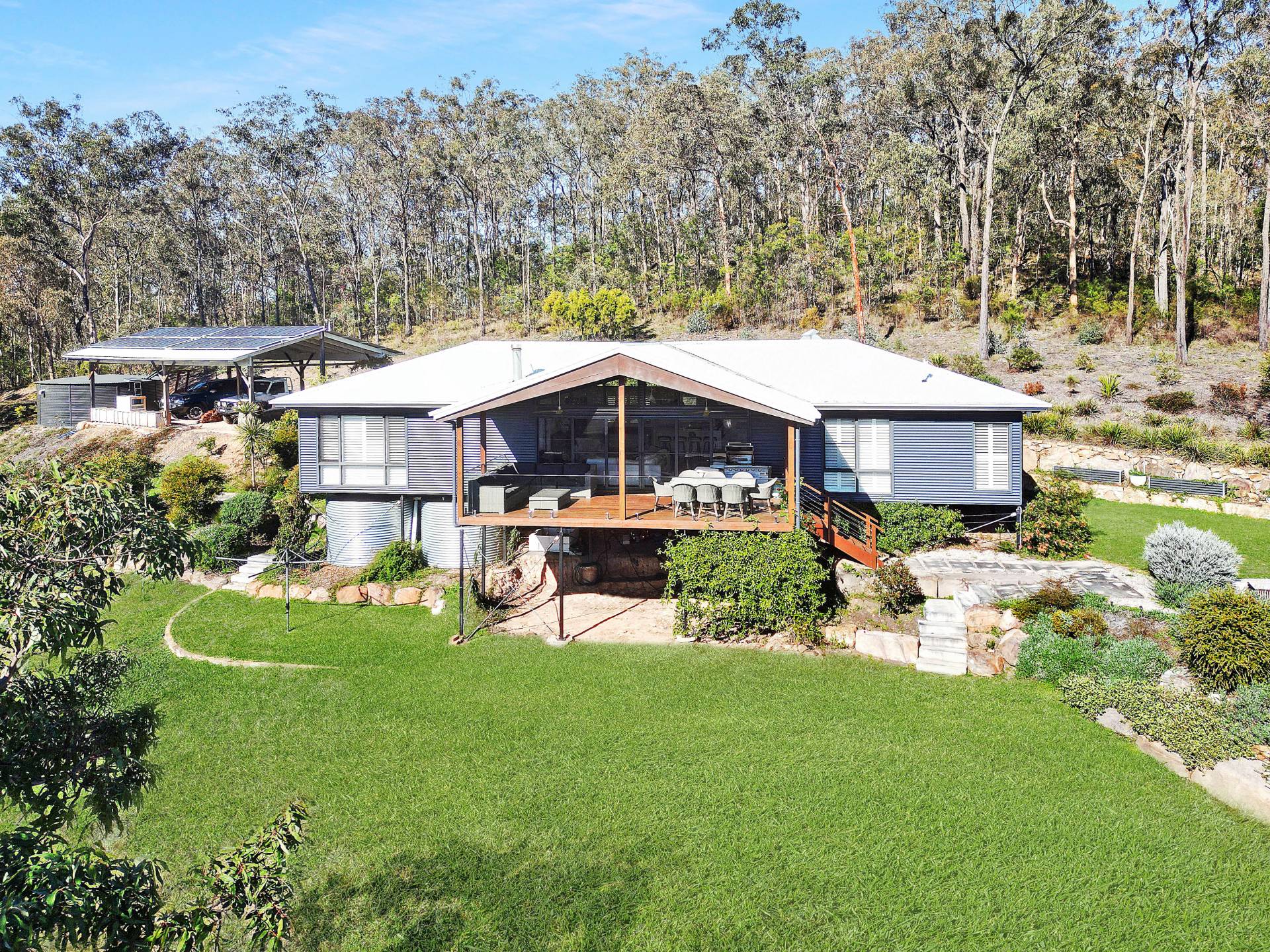 Well-equipped for living off the grid, the property is powered by a solar system with batteries and a large backup generator wired to the house, so it automatically kicks in if needed. Tank water services the house with approximately 120,000L of storage capacity.