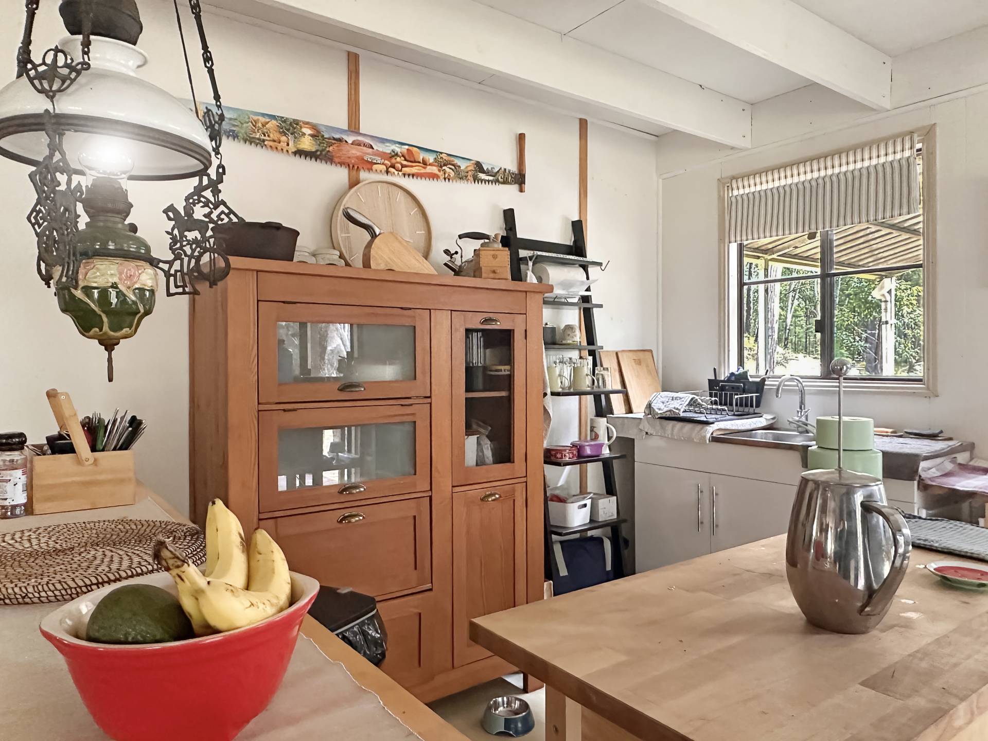 A north-facing characterful cedar shed/retreat set on the grassy park-like valley floor makes the perfect weekender escape. The building features a slow combustion wood fire place, two loft areas, sleeping quarters and a large sunny deck to embrace the picturesque surroundings. A new solar power system with batteries, satellite internet and two 22,000L water tanks provide services to the property.