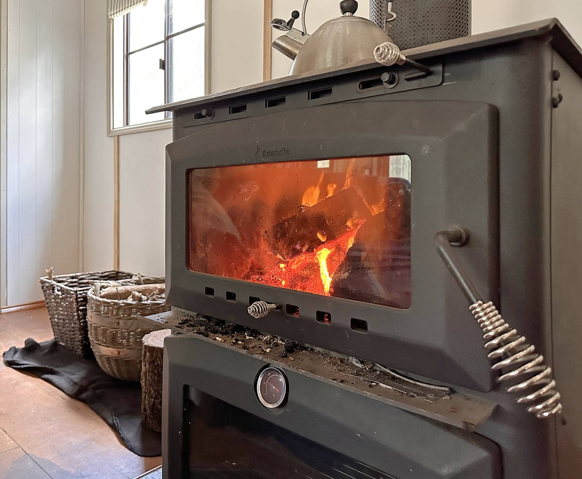 • Charming cedar shed/retreat with slow combustion fireplace, two lofts, sleeping quarters and large sunny deck
