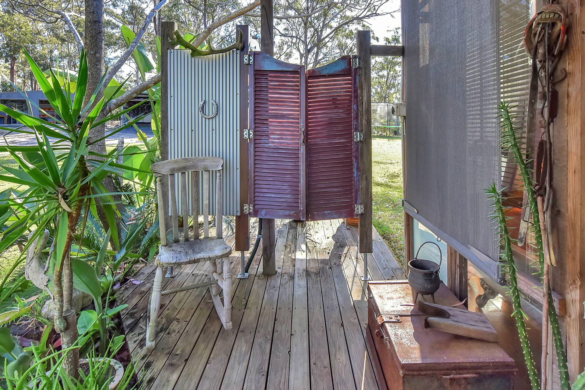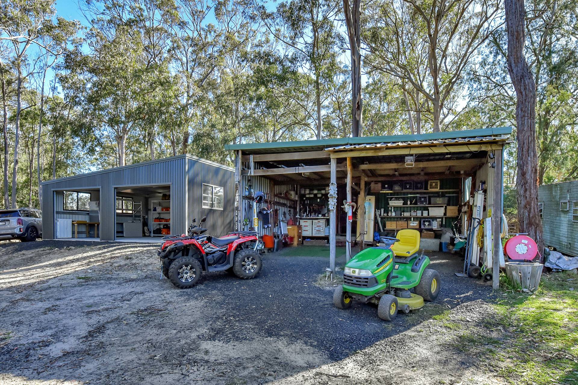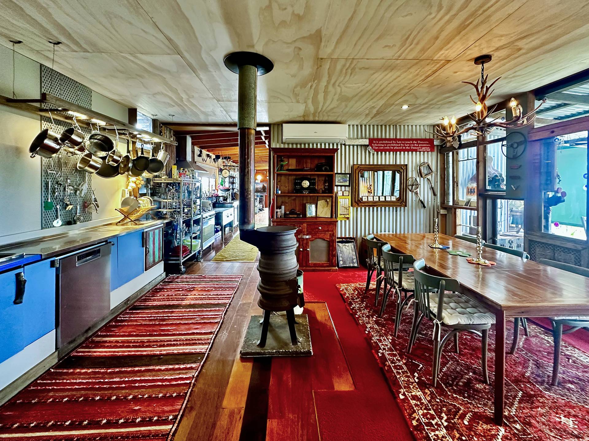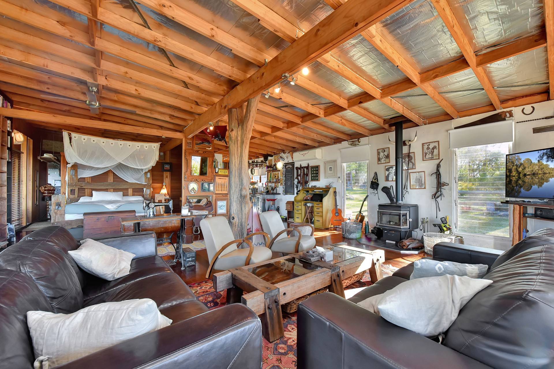 The retreat building has been fitted out with weekender facilities including two caravan rooms and comes complete with most furnishings as well as crockery and cutlery allowing for immediate use upon settlement. There are many interesting museum quality collectibles Large open spaces flow out onto an extensive hardwood timber deck which also has an undercover portion. Wet areas have been incorporated into the building along with a food prep area. The building is very quirky and has been very cleverly designed throughout. A separate stylish third caravan room has been strategically nestled into the surrounds and melds into the environment perfectly. There is a large lockable shed and open bay shed with storage container attached, ideal for all your farm equipment needs. (The owners will be offering the lucky new owner of this amazing property to purchase some of the farm machinery/equipment, an inventory can be supplied upon request). A firewood shed and other structures provide further additions to the endless list of inclusions.