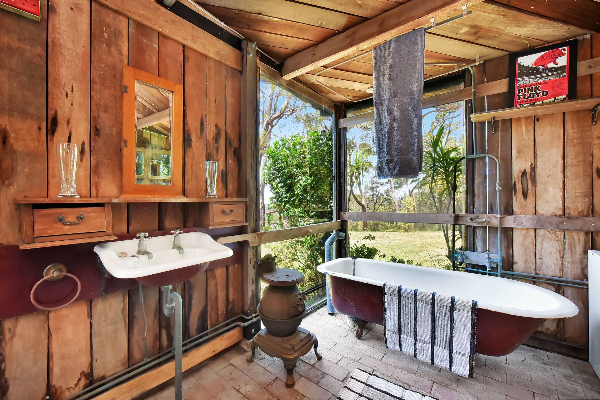Out buildings include a rustic bush studio/garage, an external bush bathroom/laundry with a clawfoot bathtub, floor to ceiling corner windows and a separate outdoor toilet. A spacious semi inground wine cellar is the perfect space for storing your favourite drop of wine. A storage shed, carport and separate wood shed plus a chicken run all add to the many features of this country getaway!