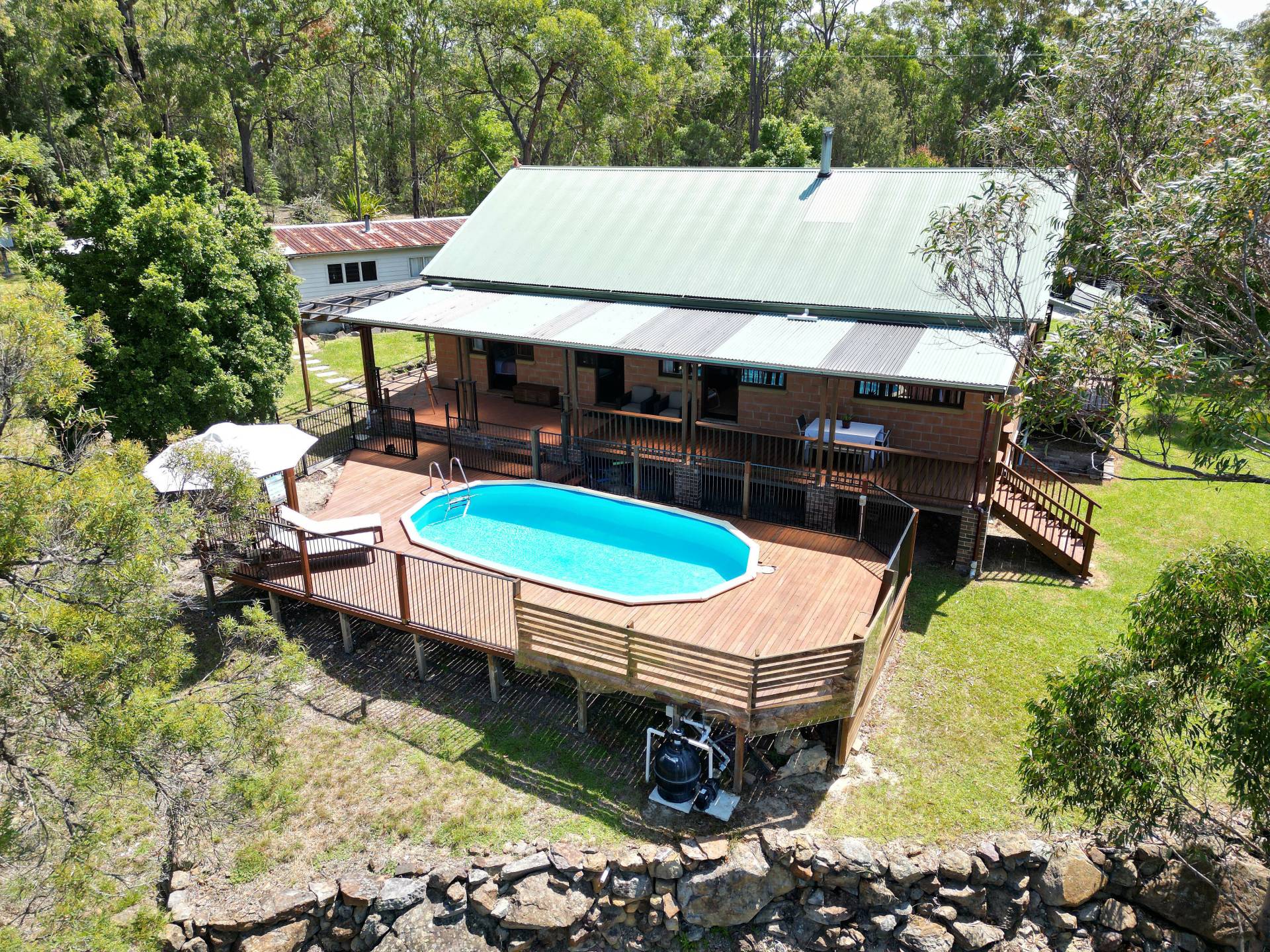 Both front and rear verandahs have been constructed from beautiful hardwood and brick. A sparkling swimming pool has been nestled into a timber deck and is just perfect for the summer months. The views are just magical! The birdlife, native fauna and flora are a highlight with many species throughout the area. The vistas of the night sky are truly amazing. Meander your way down a walking trail to another level where you can bushwalk to your hearts content.