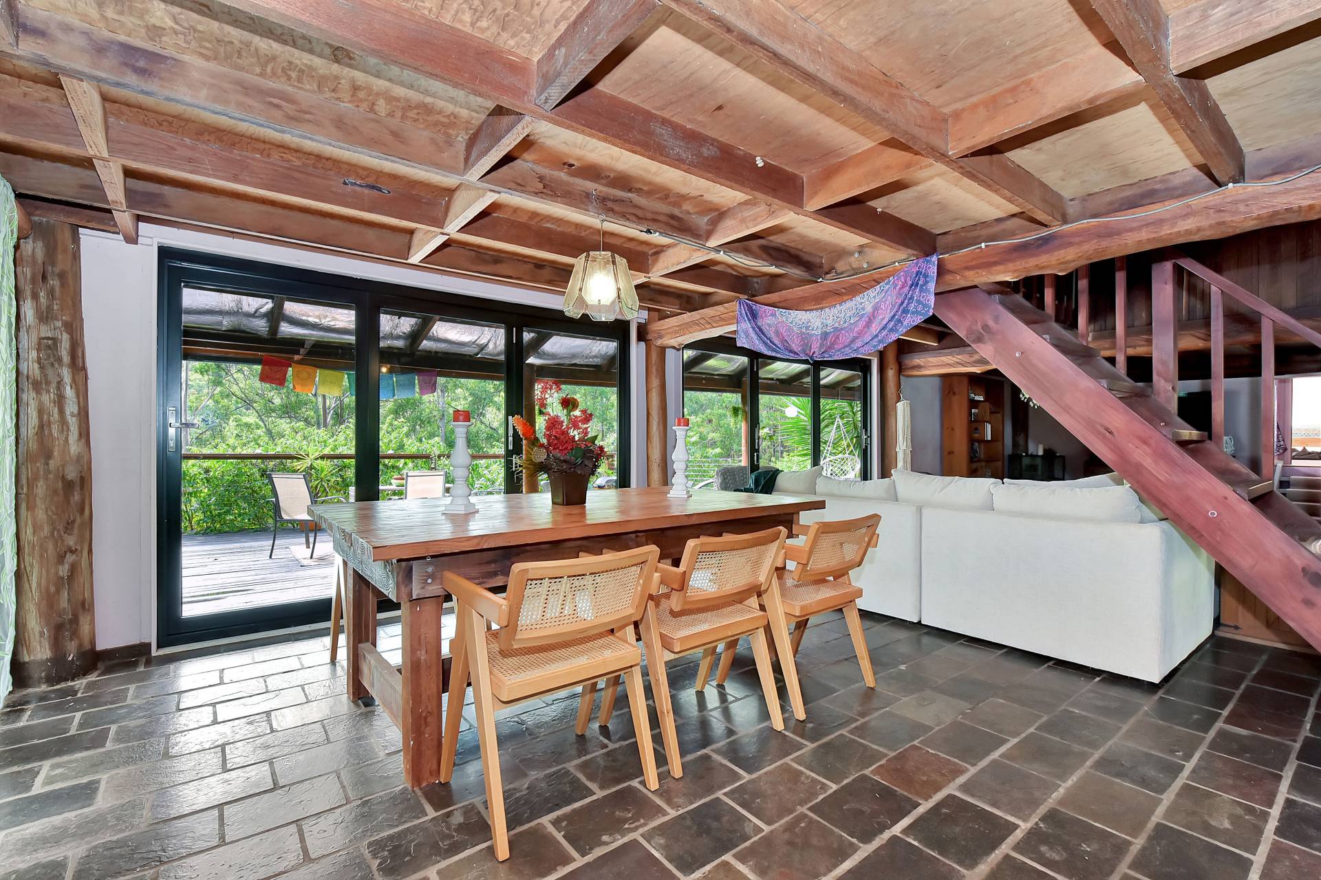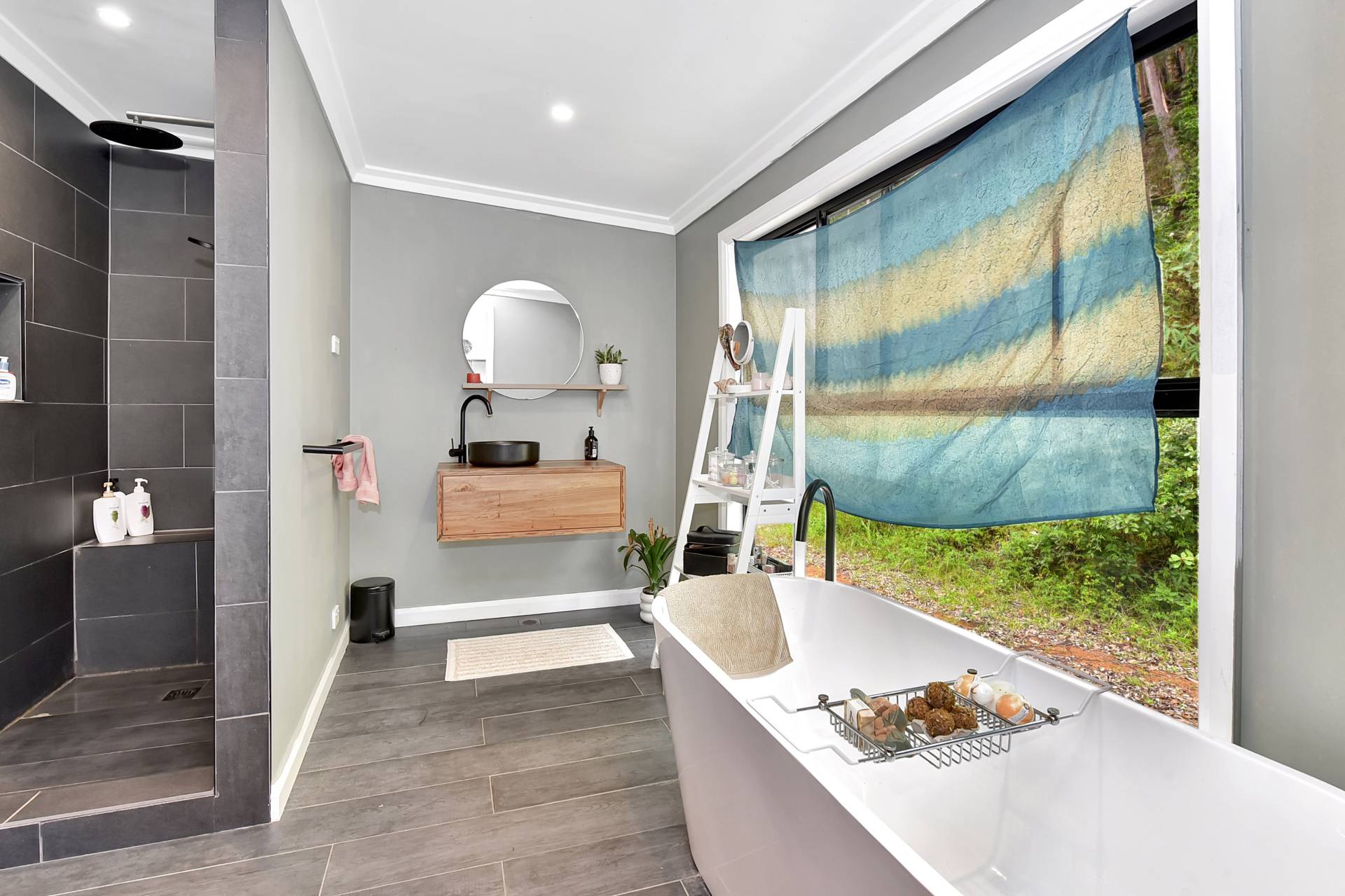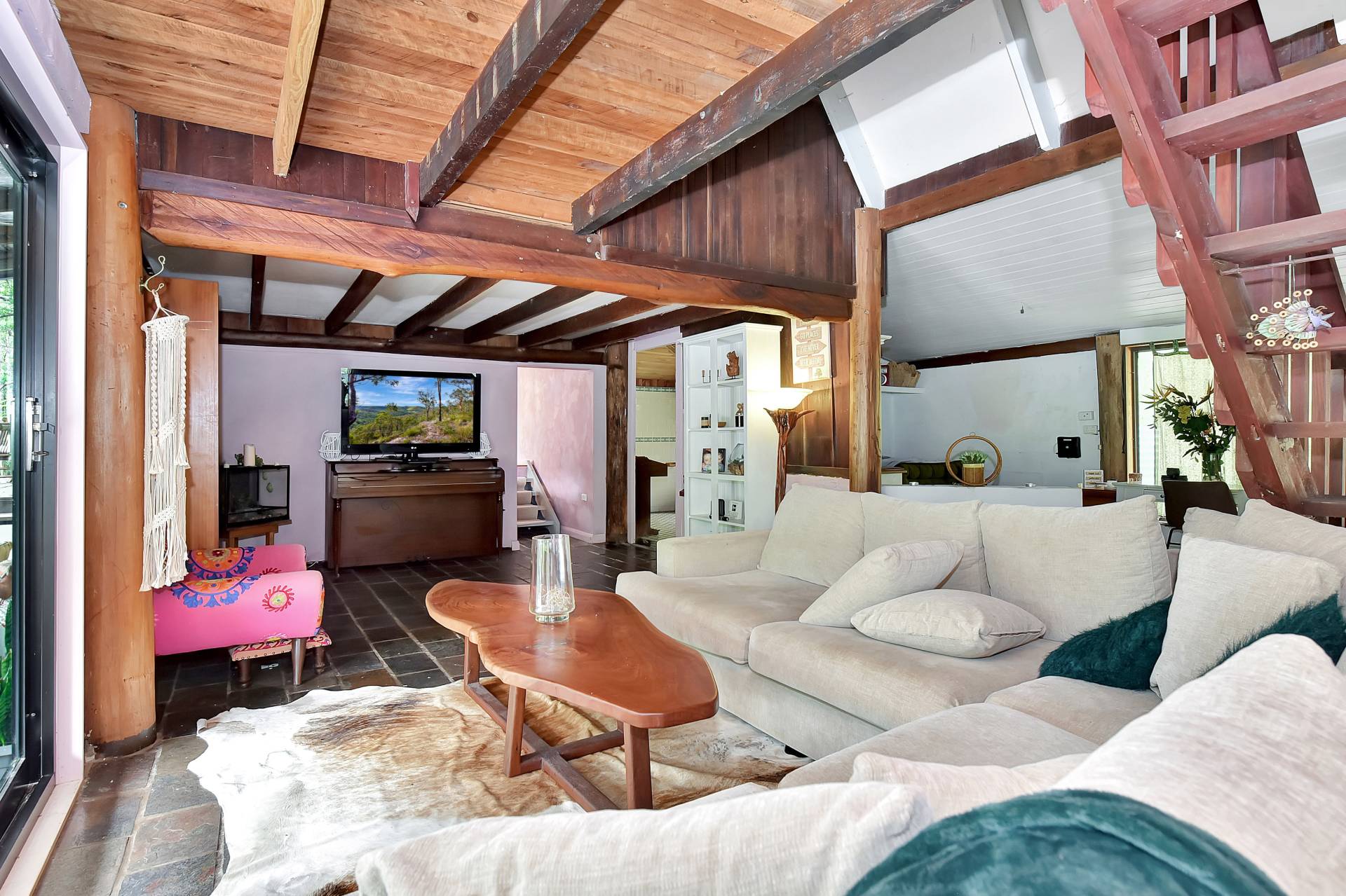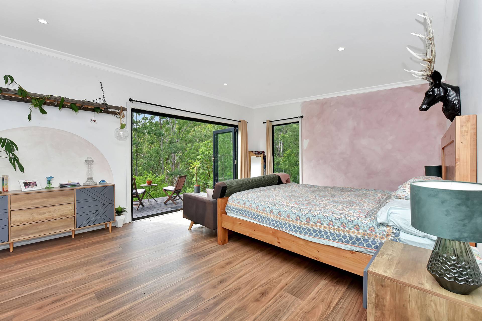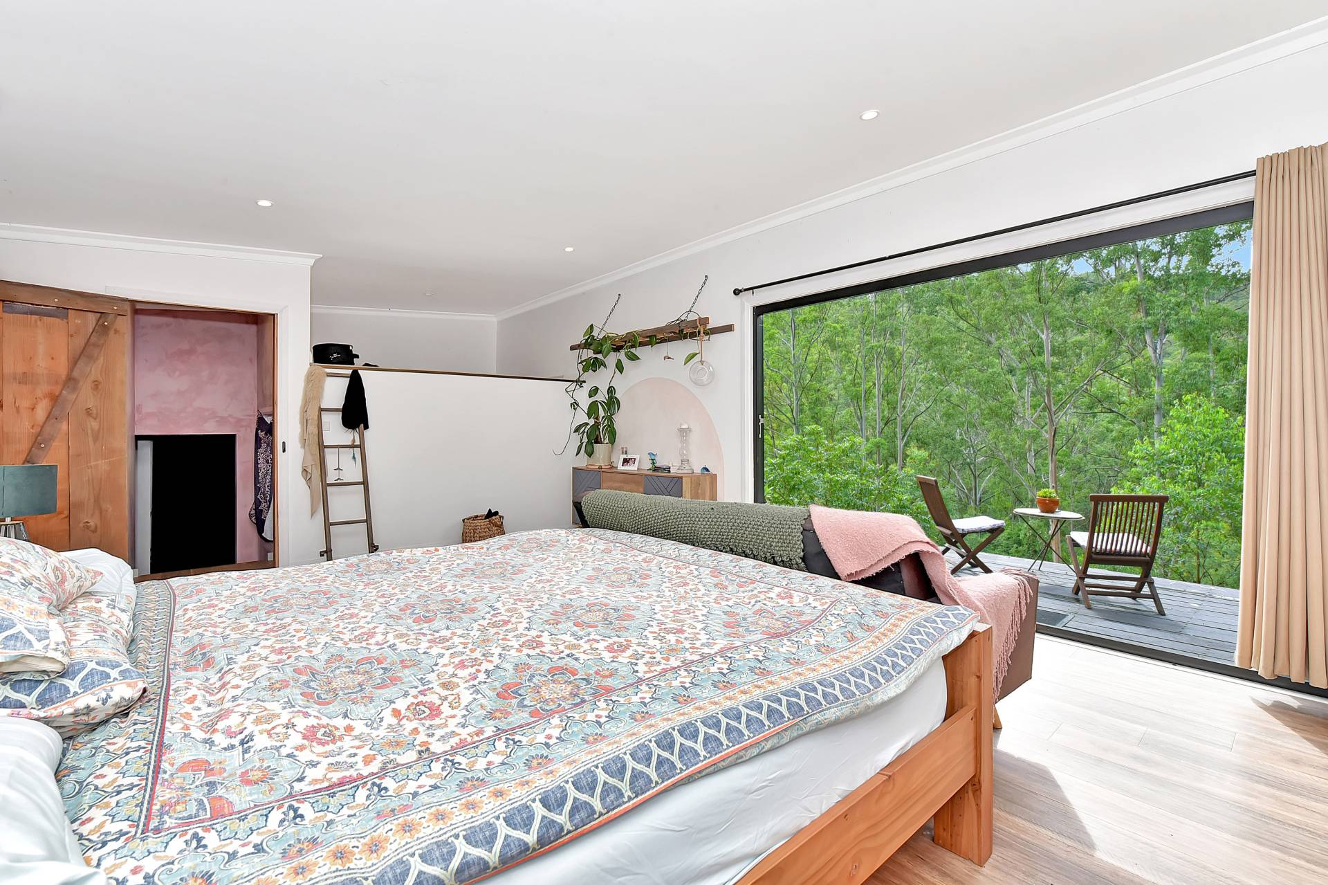 This idyllic Oregon timber and Hebel block constructed home oozes character and charm. With stunning bush surrounds the house sits on approx. 5 acres (2 ha’s) of semi cleared land blending a mix of lush valley floor rising to majestic mountain side land. This gorgeous country home comprises open plan living throughout with a sizeable country style kitchen, dining room, loungeroom/living room and study. A massive master bedroom with a mezzanine storage area and modern ensuite has access straight out onto a timber deck via large stacker doors, bringing nature to your bedside. The other two bedrooms are located upstairs and share stunning views into the tree’s and over the property. A spacious bathroom combines lead light windows, earthy slate floors and a clawfoot bathtub/shower. High ceilings, stunning timber features and large light filled windows/stacker doors allow the picturesque surrounds to be appreciated from all angles of the house interior.