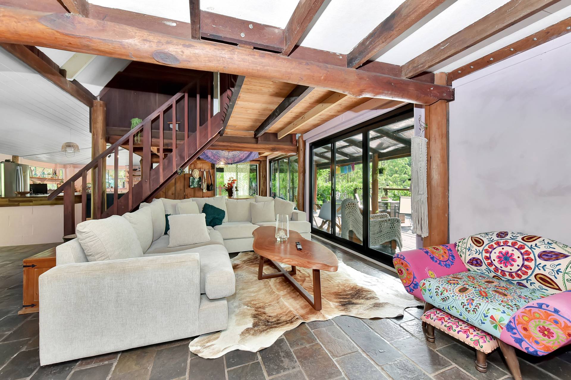 Established gardens encompass the home including some awesome vegetable and herb gardens. Follow a meandering bush pathway down to a large dam with its own timber jetty. Take in amazing rock escarpments and many tree species including grey gums and blue gums as you trek around the property.
