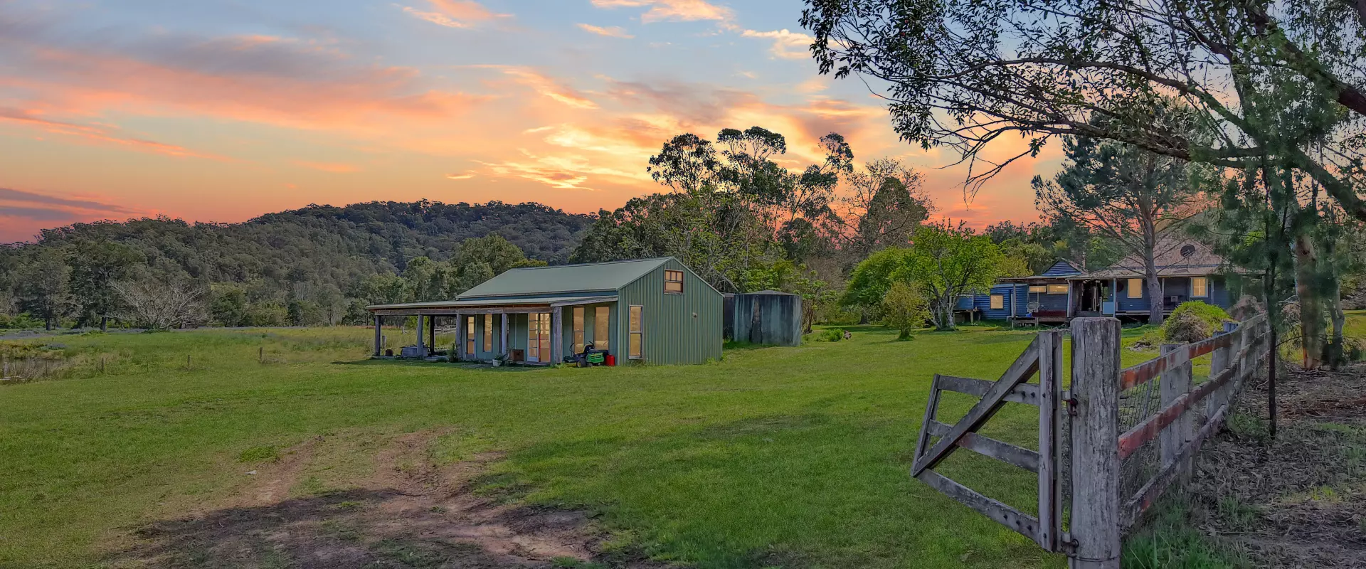 Extra features include a barn-style shed with two mezzanines and a covered verandah overlooking the water, 5,463sqm (1.34 acres) of mostly arable land, perfect for small animals, gardens, or space for children’s play. This rare small-acreage is one of only a few acreages within the Wollombi village boundaries.