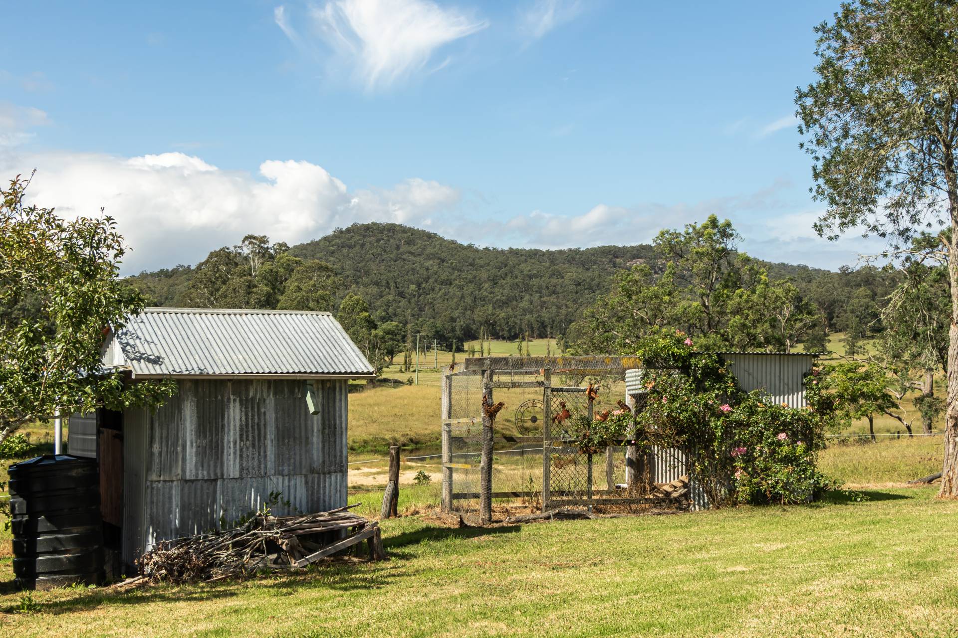 The meandering Wollombi Brook creek line is extensive throughout the property, bounded by native trees and sandy beaches along the way. Explore a hidden valley which takes you up into another world. Mountain bushland with a Myrtle Forest, many tree species and a large dam.