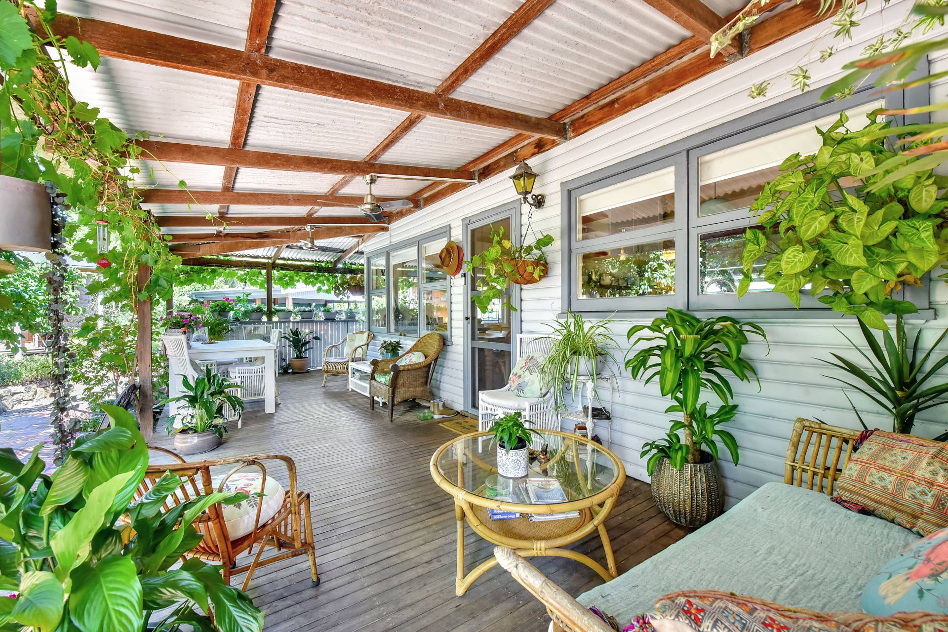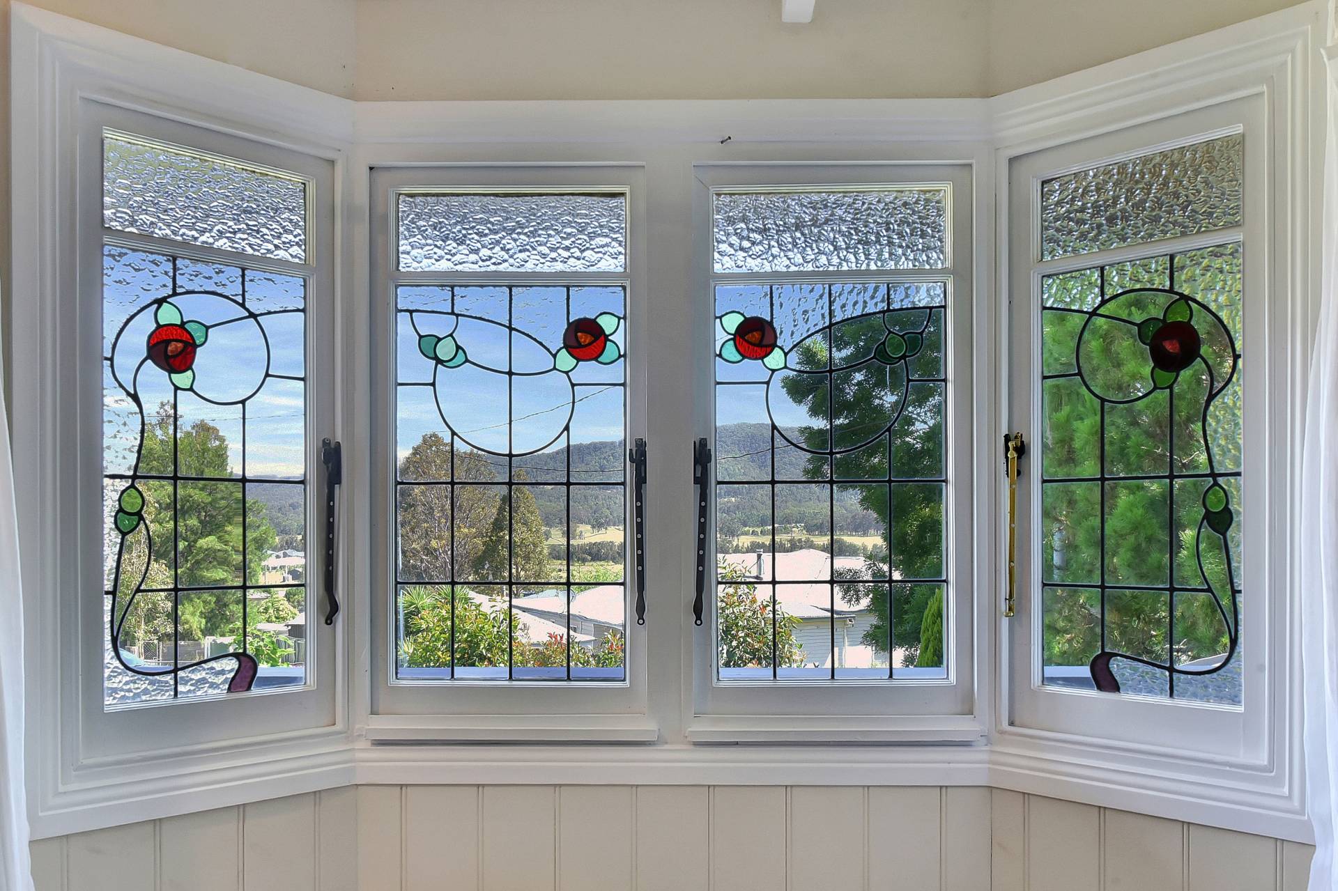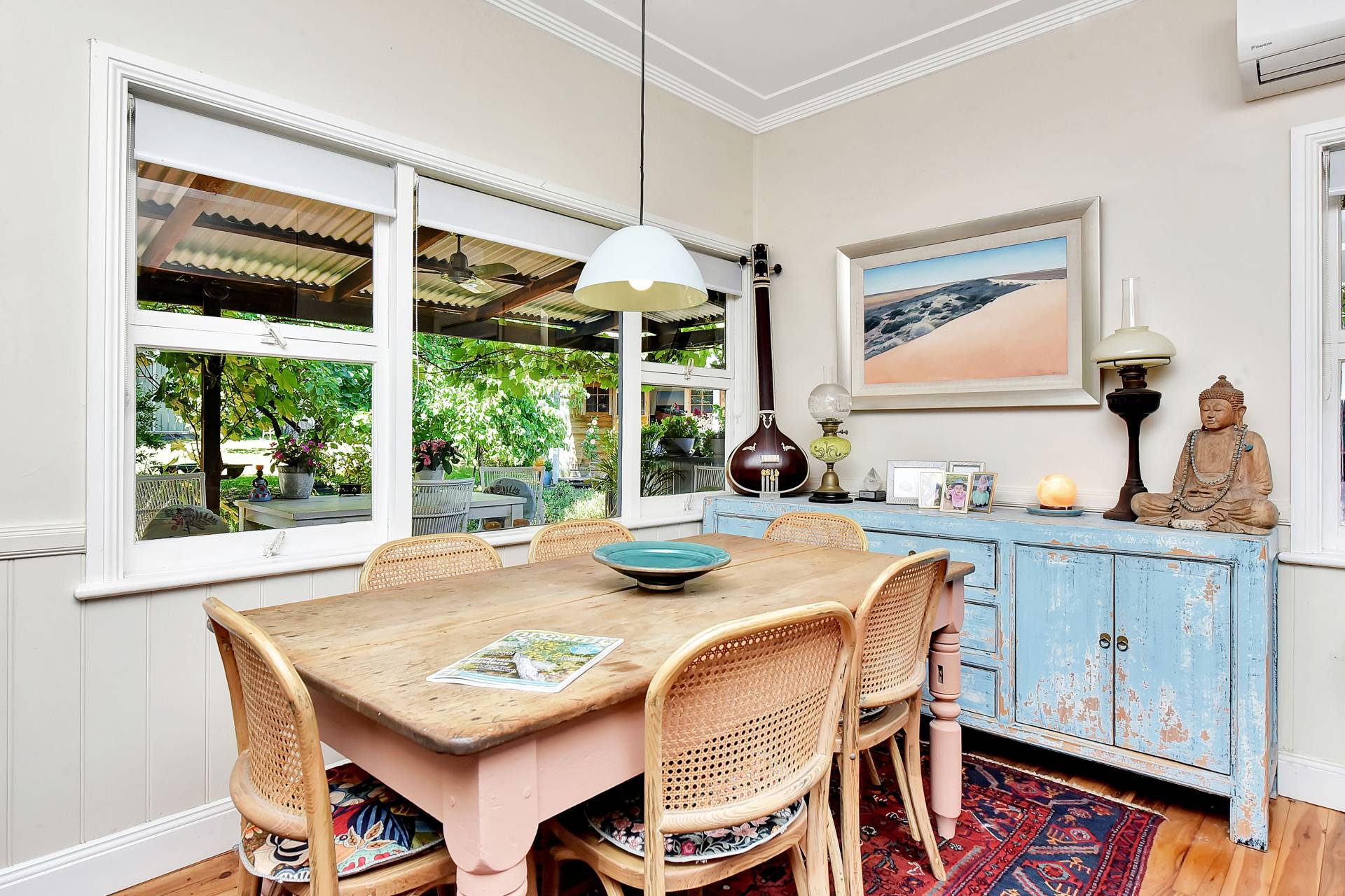 Step inside the character-filled home and feel instantly at ease in this uniquely artistic abode. High ceilings, timber floors, and stained-glass windows create a warm and inviting atmosphere throughout. A wide wraparound verandah provides multiple outdoor living and entertaining spaces — with the front aspect showcasing the glorious mountain panorama.