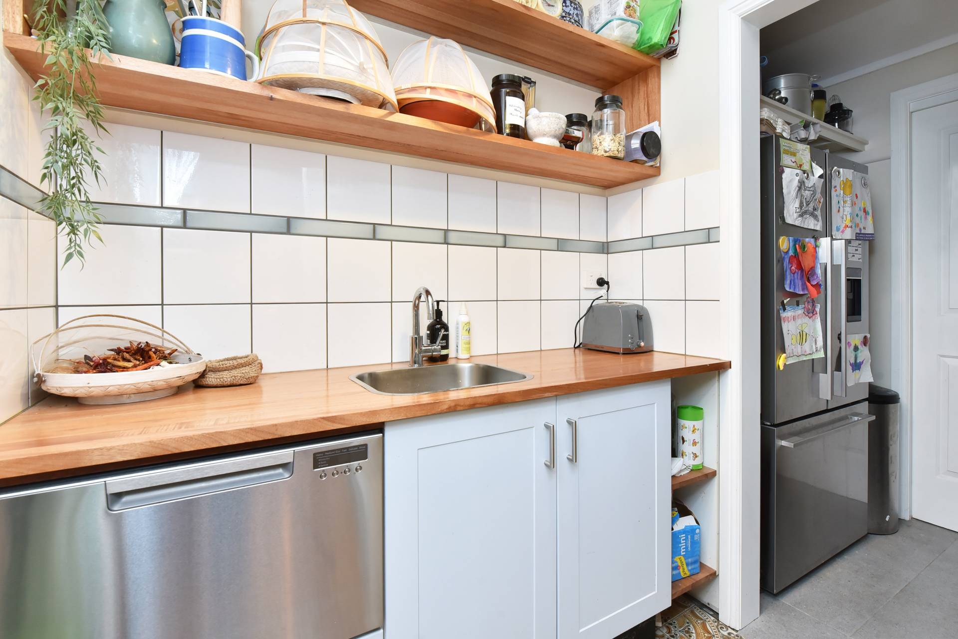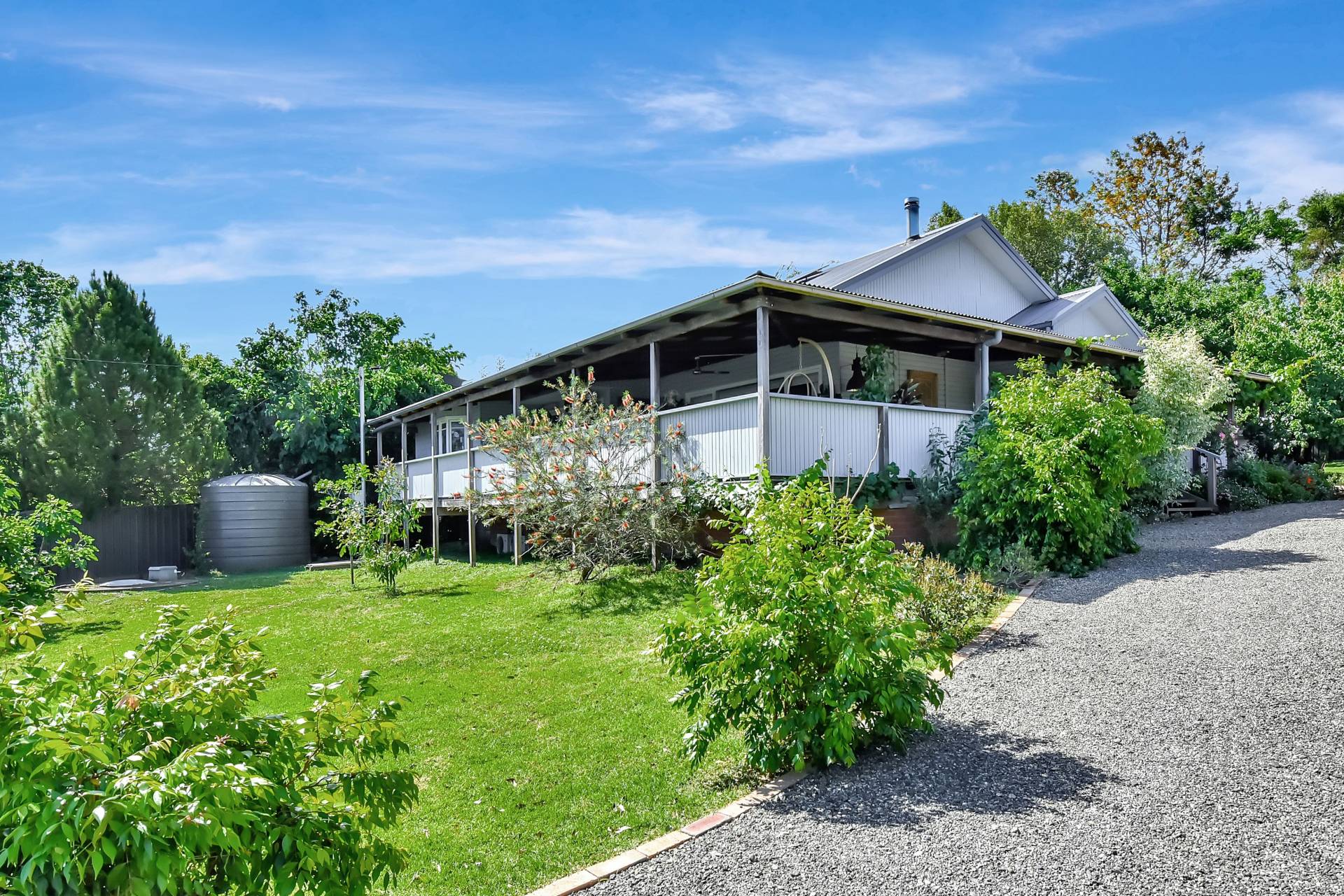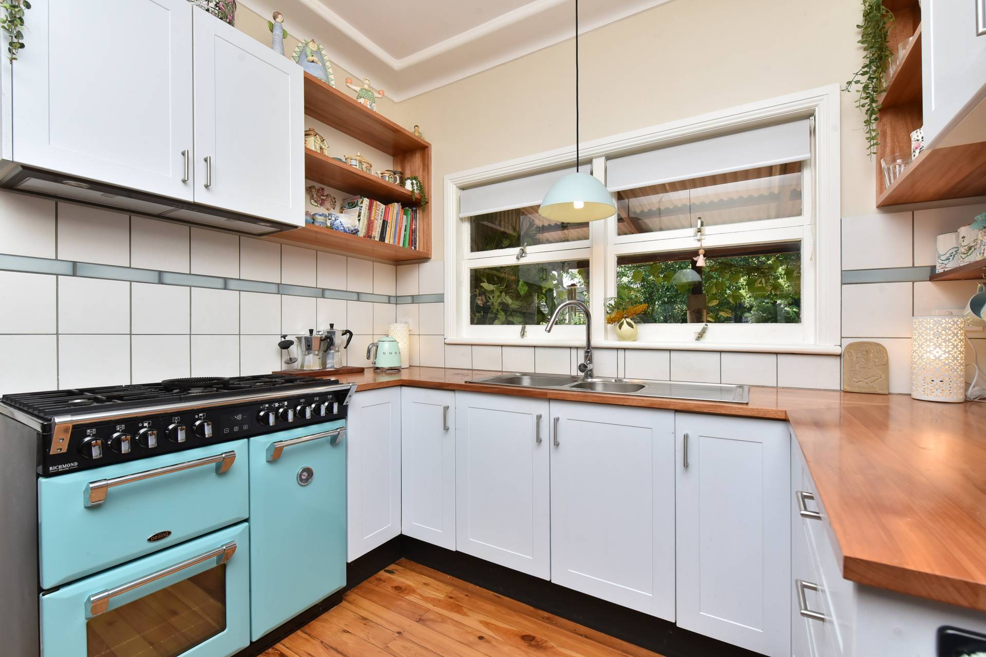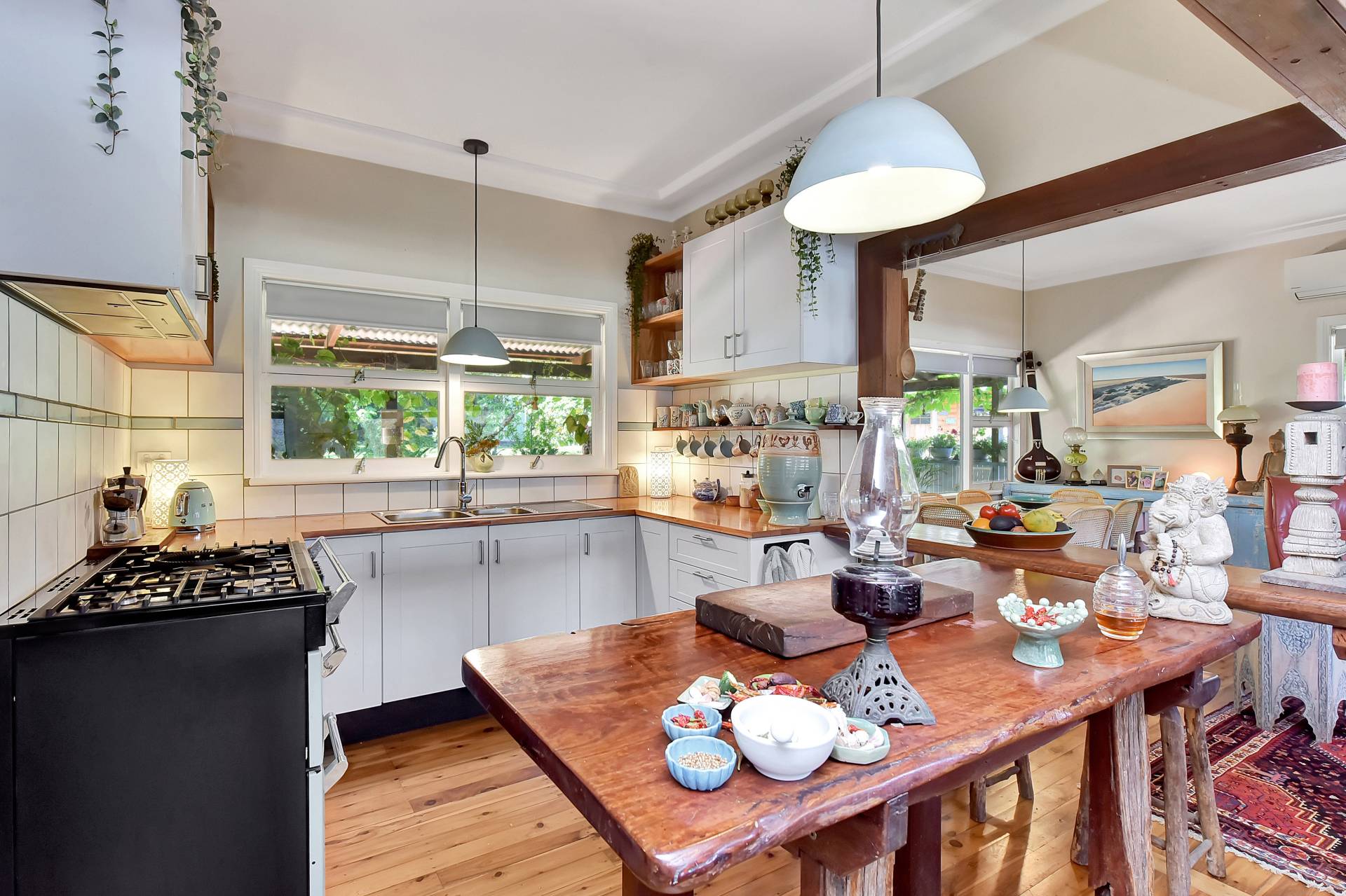 The living area features a cast-iron fireplace for cosy winter nights, complemented by reverse-cycle air conditioning in the living space and all bedrooms for year-round comfort. The country-style kitchen is both stylish and functional, boasting a premium 110cm Belling Richmond oven with gas cooktop, a butler’s pantry with dishwasher, and access to a generous laundry/mudroom with external entry.