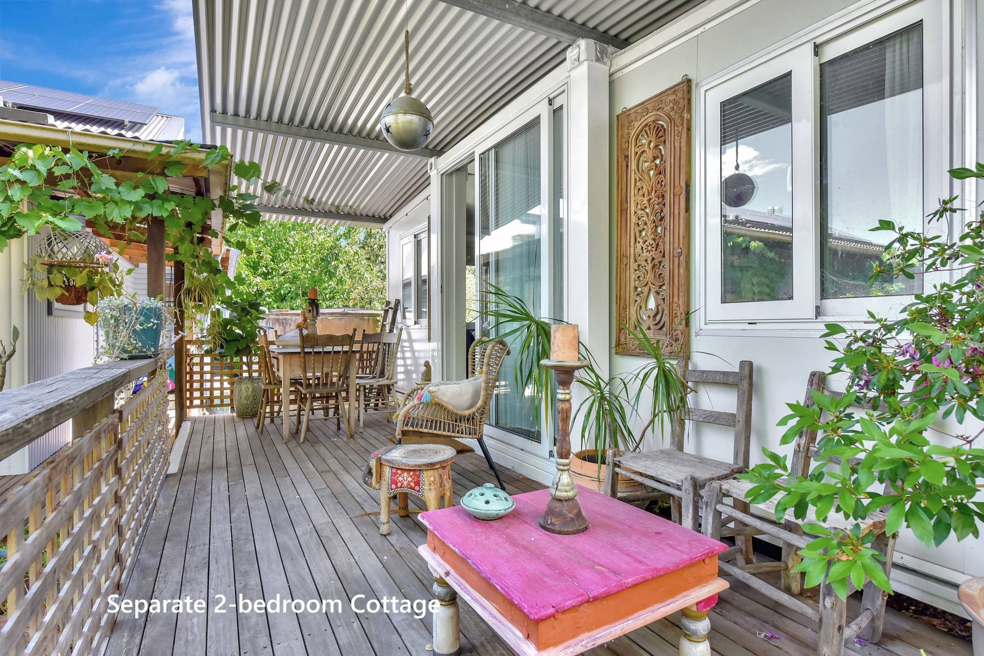 Adding to the property’s appeal is a self-contained two-bedroom cottage nestled among the leafy grounds, complete with kitchenette, bathroom, and living space — ideal for extended family, guests, or potential short-stay accommodation.