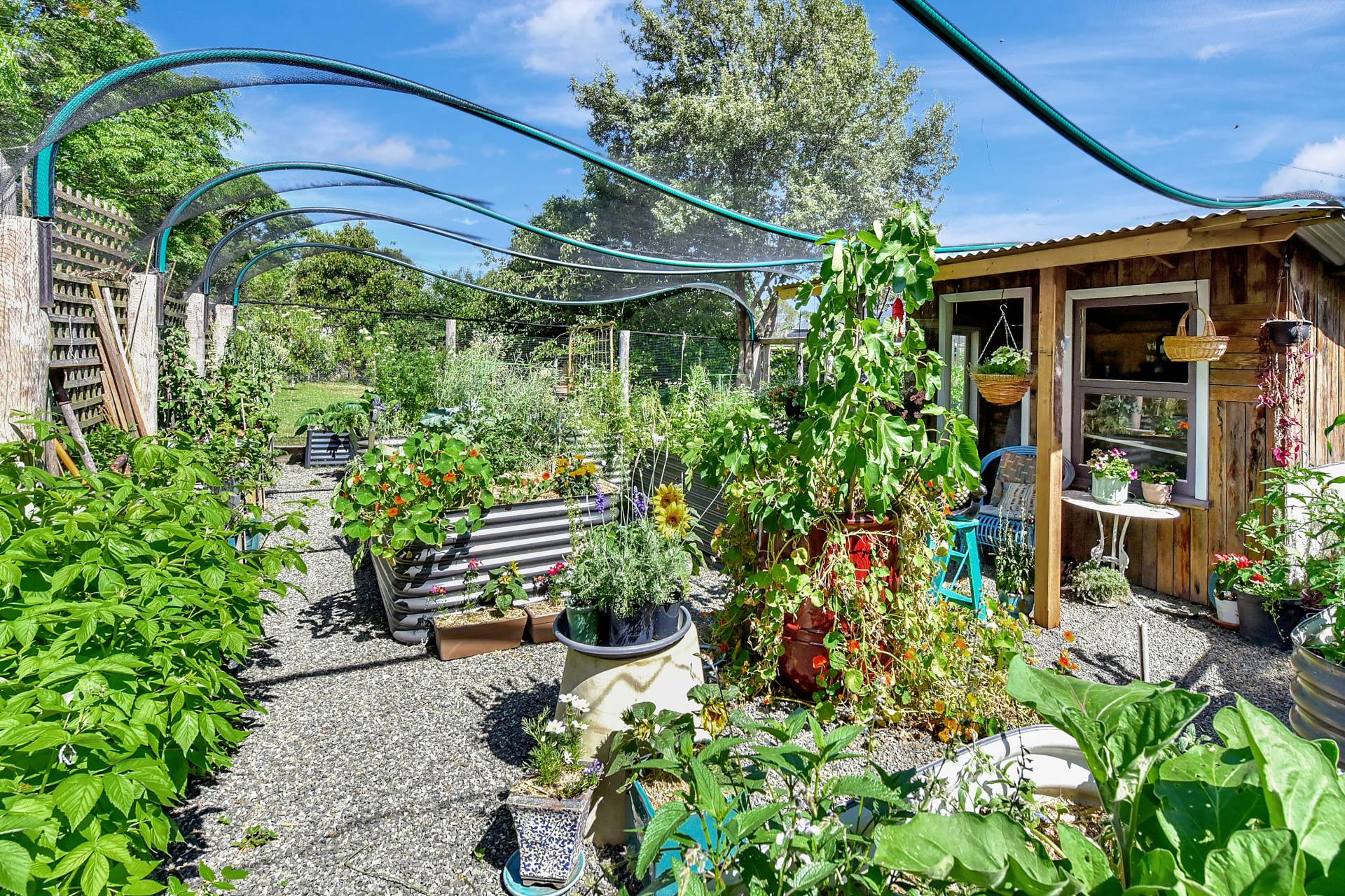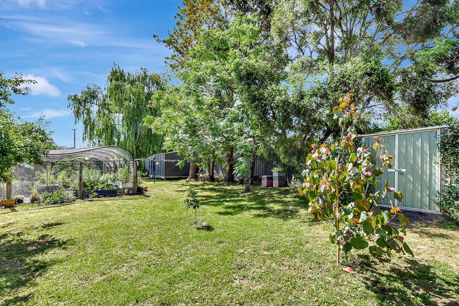Set on a spacious double block of 1,774sqm, the property embraces a sustainable lifestyle with the ability to operate fully off-grid. A large solar power system with battery storage, rainwater tanks, and an envirocycle septic setup provide eco-friendly independence, while mains power remains connected for added flexibility if required. The extensive covered vegetable garden, complete with raised garden beds and a separate chicken coop, allows you to enjoy fresh homegrown produce and eggs year-round.