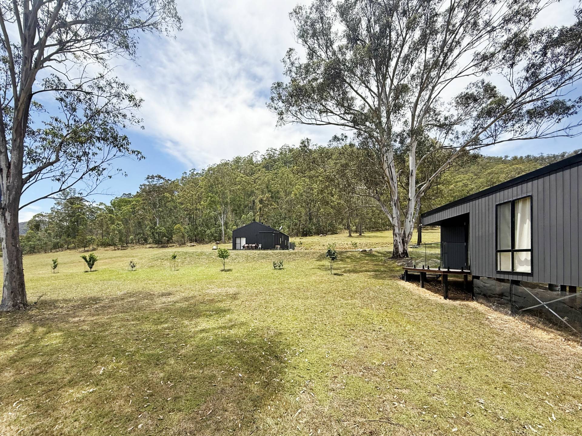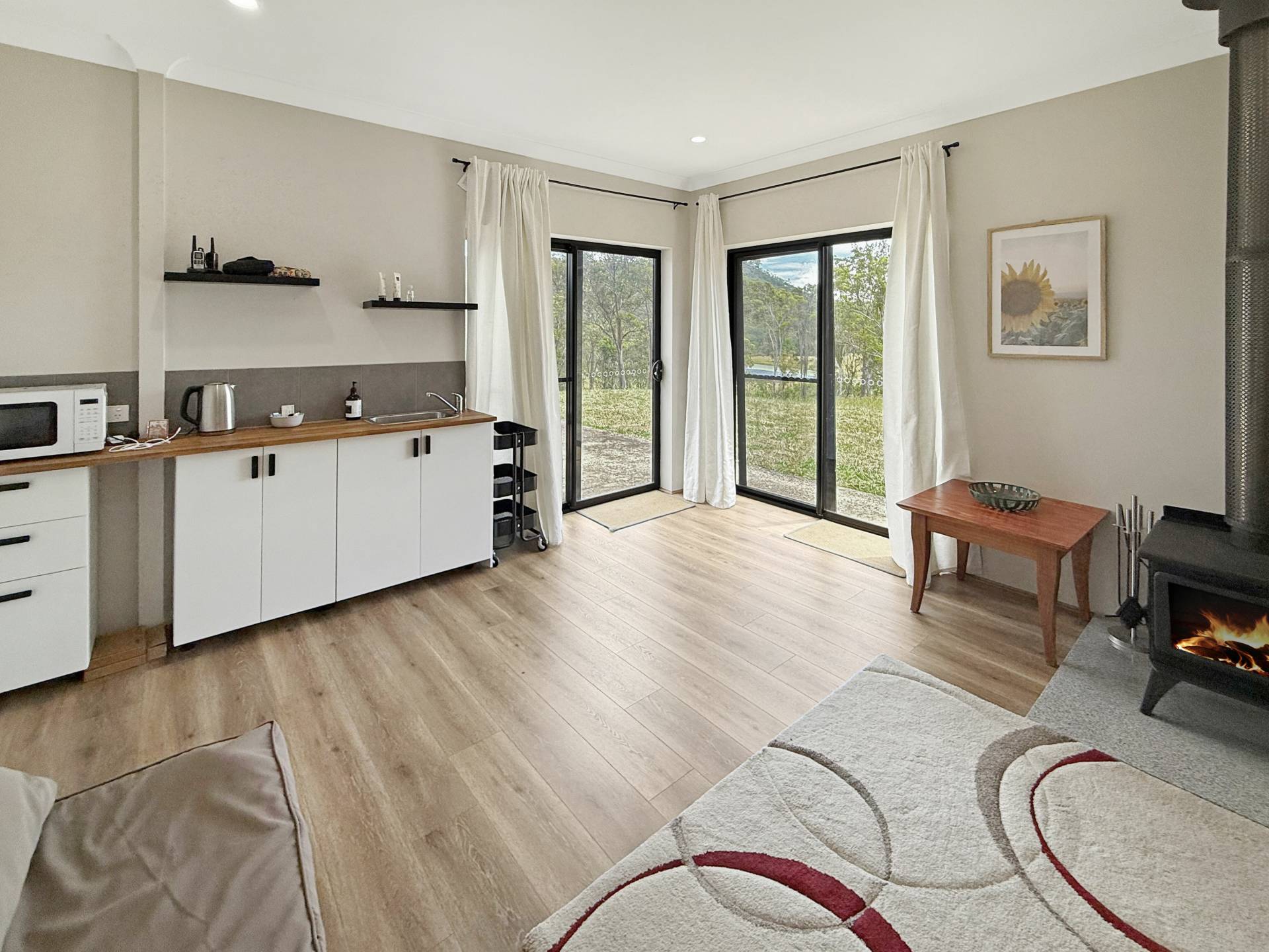 Two council-approved cabins are fully equipped for use as BnBs, each with its own kitchenette and bathroom. A spacious machinery shed contains a high-quality solar power system with battery storage, as well as a laundry/bathroom and interior rooms featuring a slow combustion fireplace.