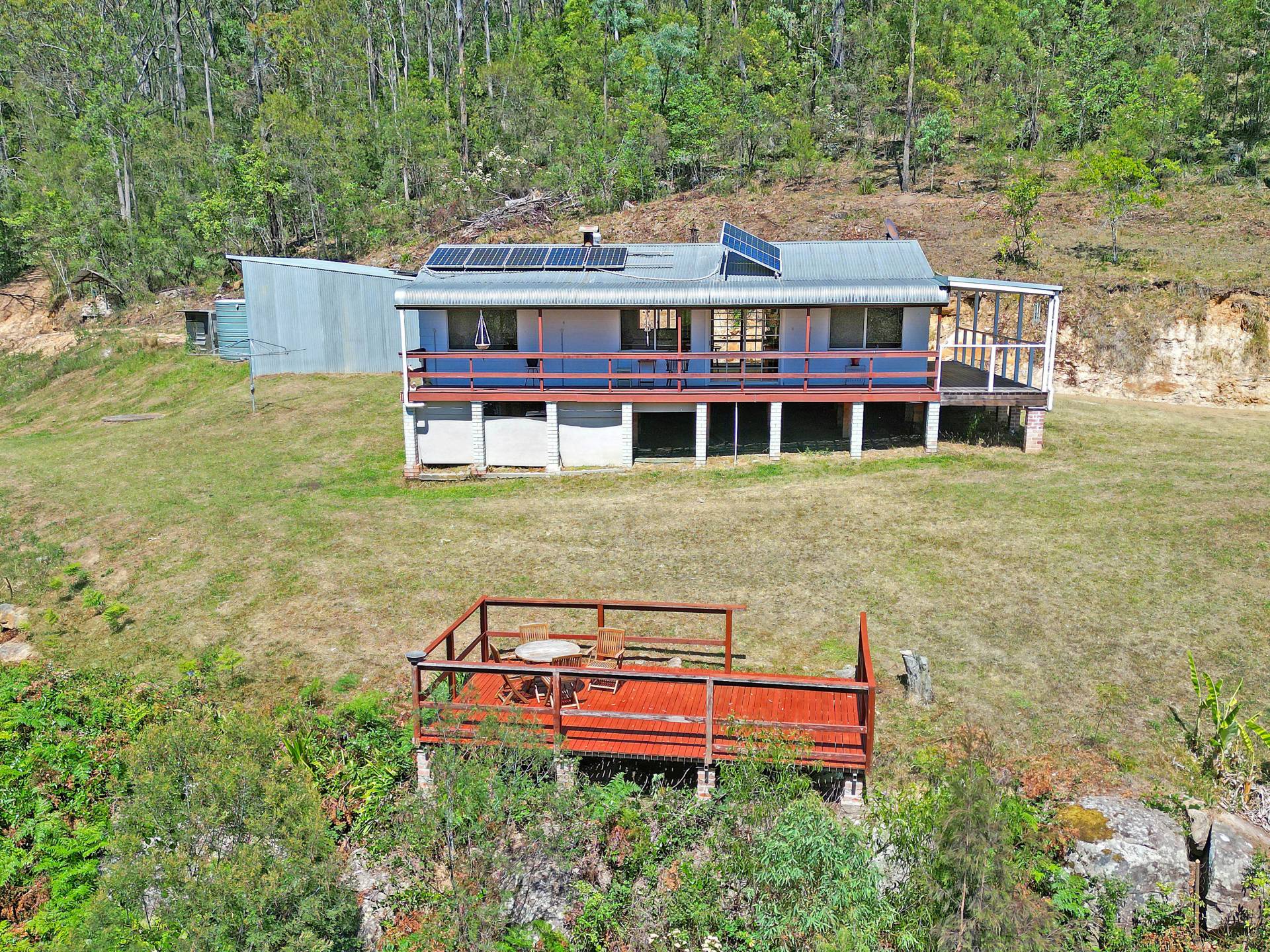 Near-by the house is a timber alfresco area where you can sit and chill out, taking in the prolific bird life and watch the Kangaroo’s and wallabies graze on the grassy valley below. There are two dams supplying a good water source for gardens and domestic water storage tanks (approx. 40,000L total) for the house water supply. While there is no mobile reception, satellite internet services are currently available to the property with WiFi calling as an option for mobile phone coverage.
