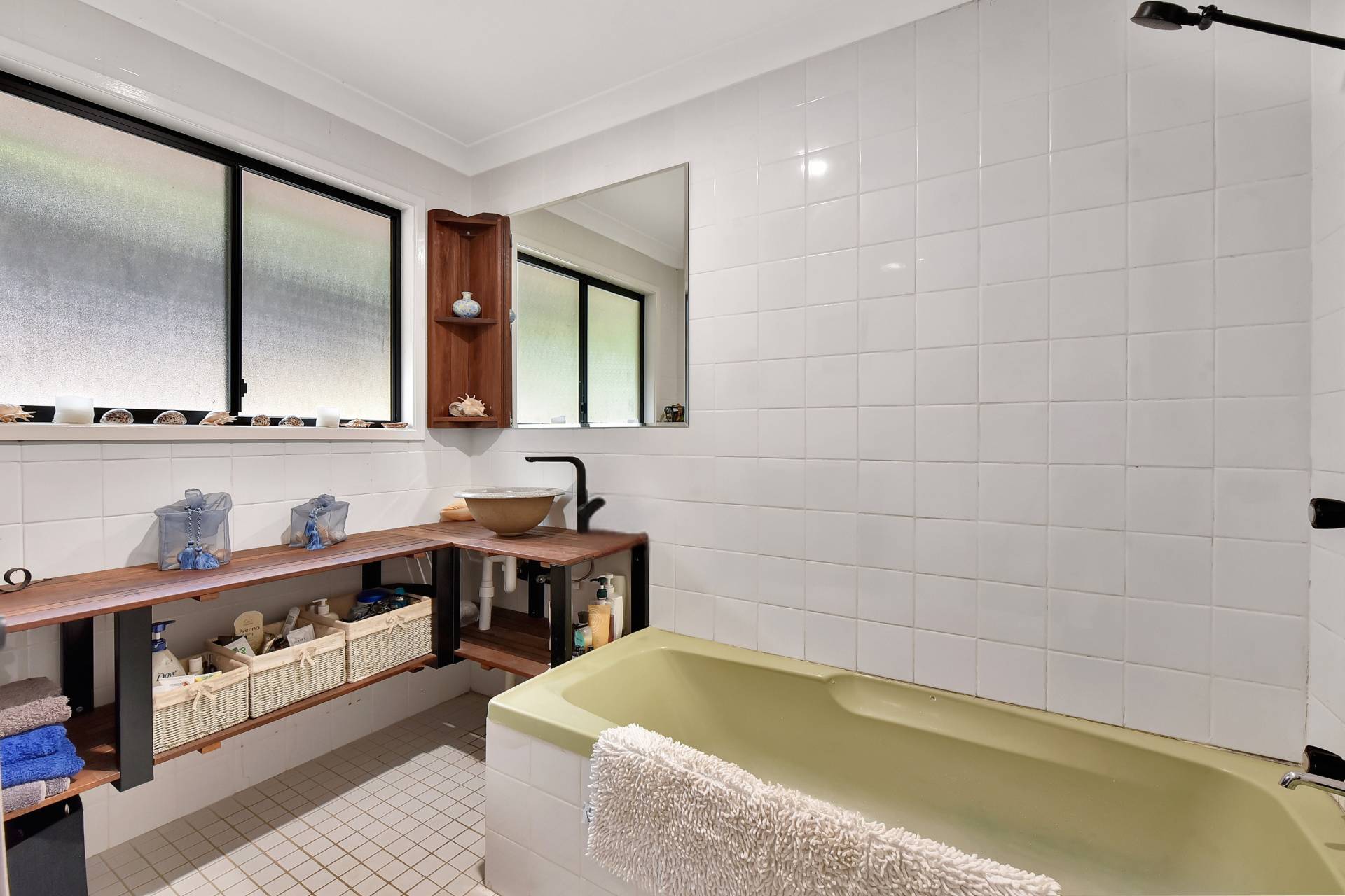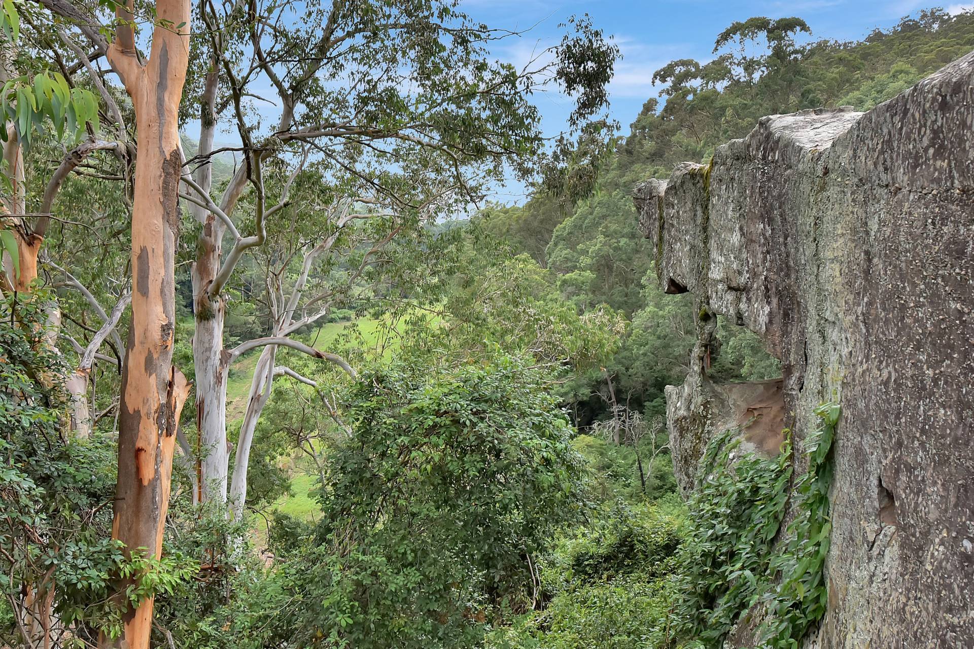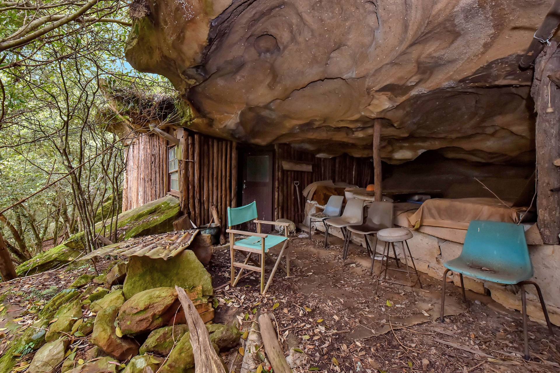 A quirky feature of the property is a large cave overhang (no longer in use), which was fitted out and used as a camping spot separate to the house with stringy bark trees used to line walls and enough space for a small bedroom, living space and bush kitchen.
