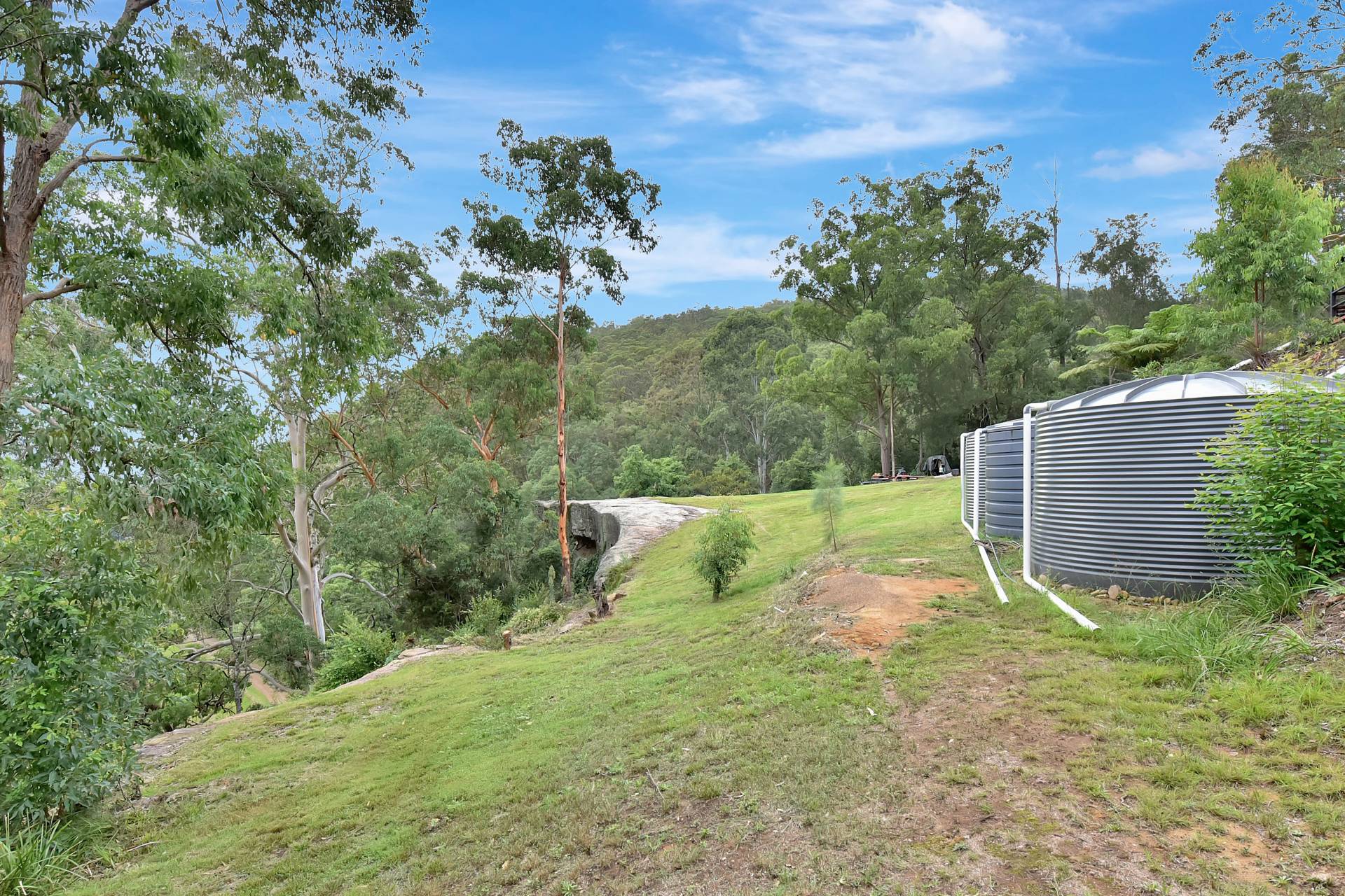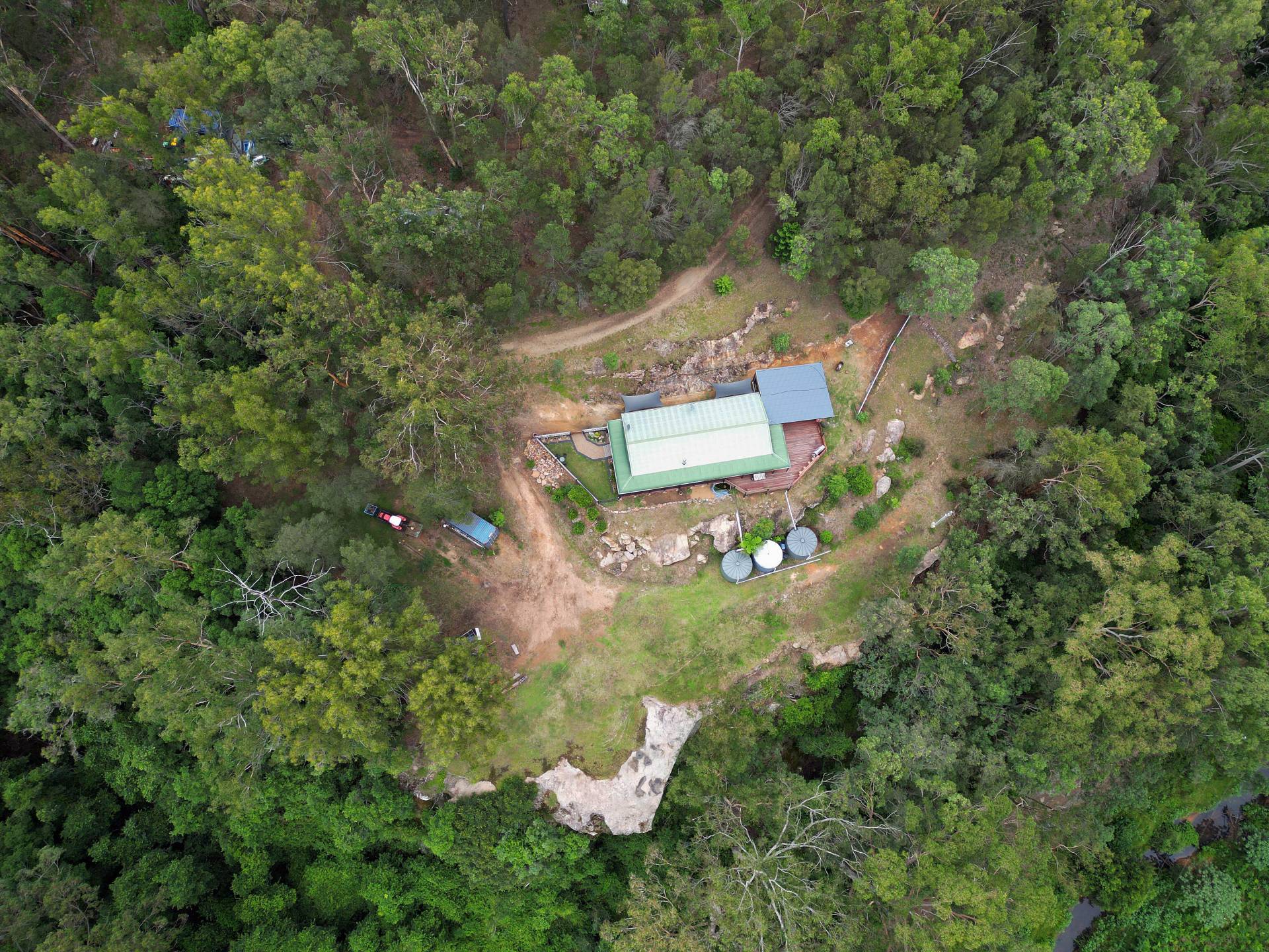 There is approx 100,000L of water tank storage, mains power connected and a septic system. Access is quite good with most of the road in being a council maintained gravel road and the last 350m is a gated private road.