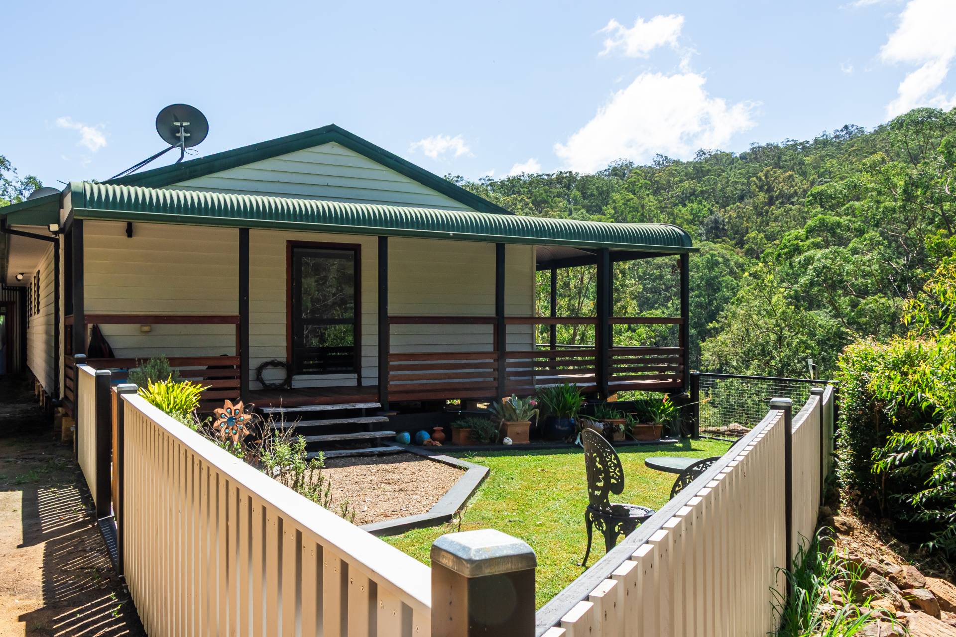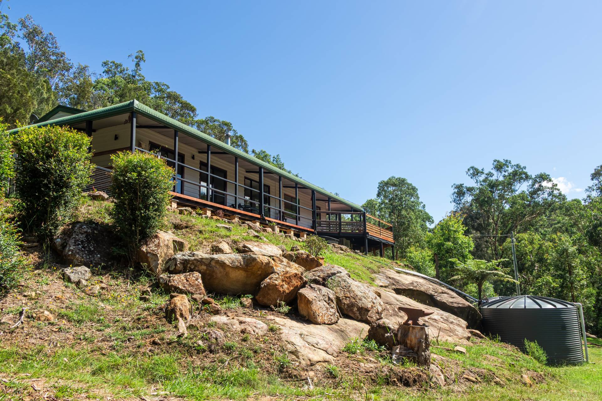 Featuring at least 5 arable acres adjoining Watagan Creek, the land is a nature lovers heaven with rock escarpments, large overhangs, lush gullies and giant ancient trees characterising the unique holding. Views from the wrap around bull nose verandah and decking area are simply stunning.