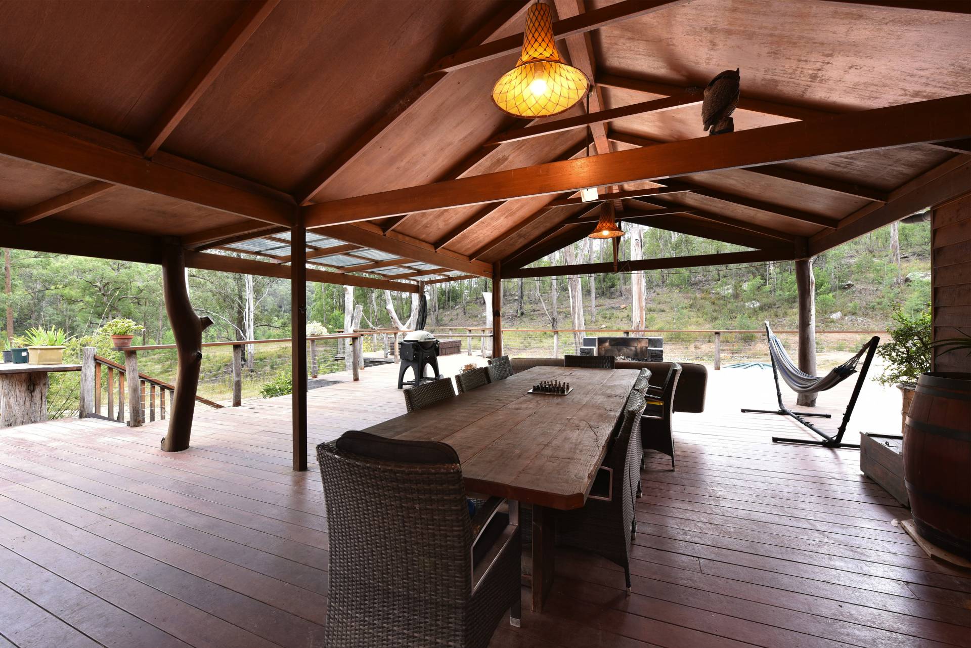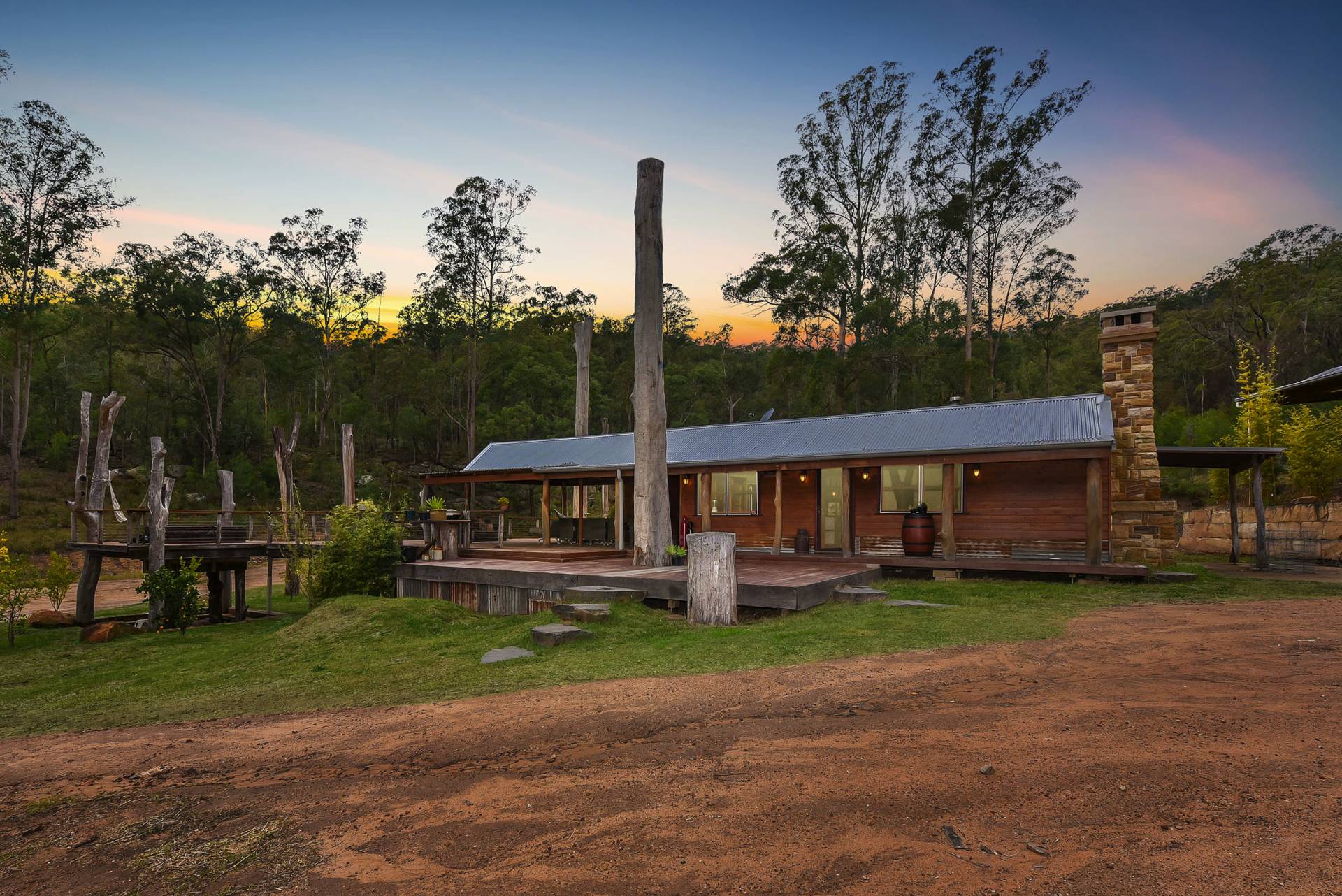 An extraordinary homestead exuding ‘rustic charm’ with a fine modern edge. Positioned amidst ‘Yango National Park’ and offering total privacy in all directions. Imagine having your own hidden 118 acre (47.8 hectare) magical valley! Alive with abundant wild life, remarkable flora and fauna, backing onto National park land on three sides. The property blends a diverse mix of approx. 40 acres of cleared undulating grass lands with stunning gullies fringed with natural Australian bushland. Water supply is sourced from two dams, an intermittent creek line spotted with natural water holes in various locations.