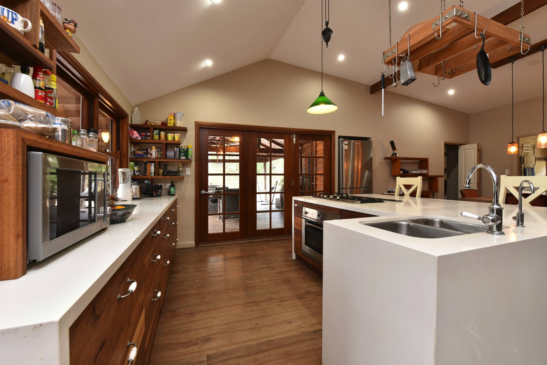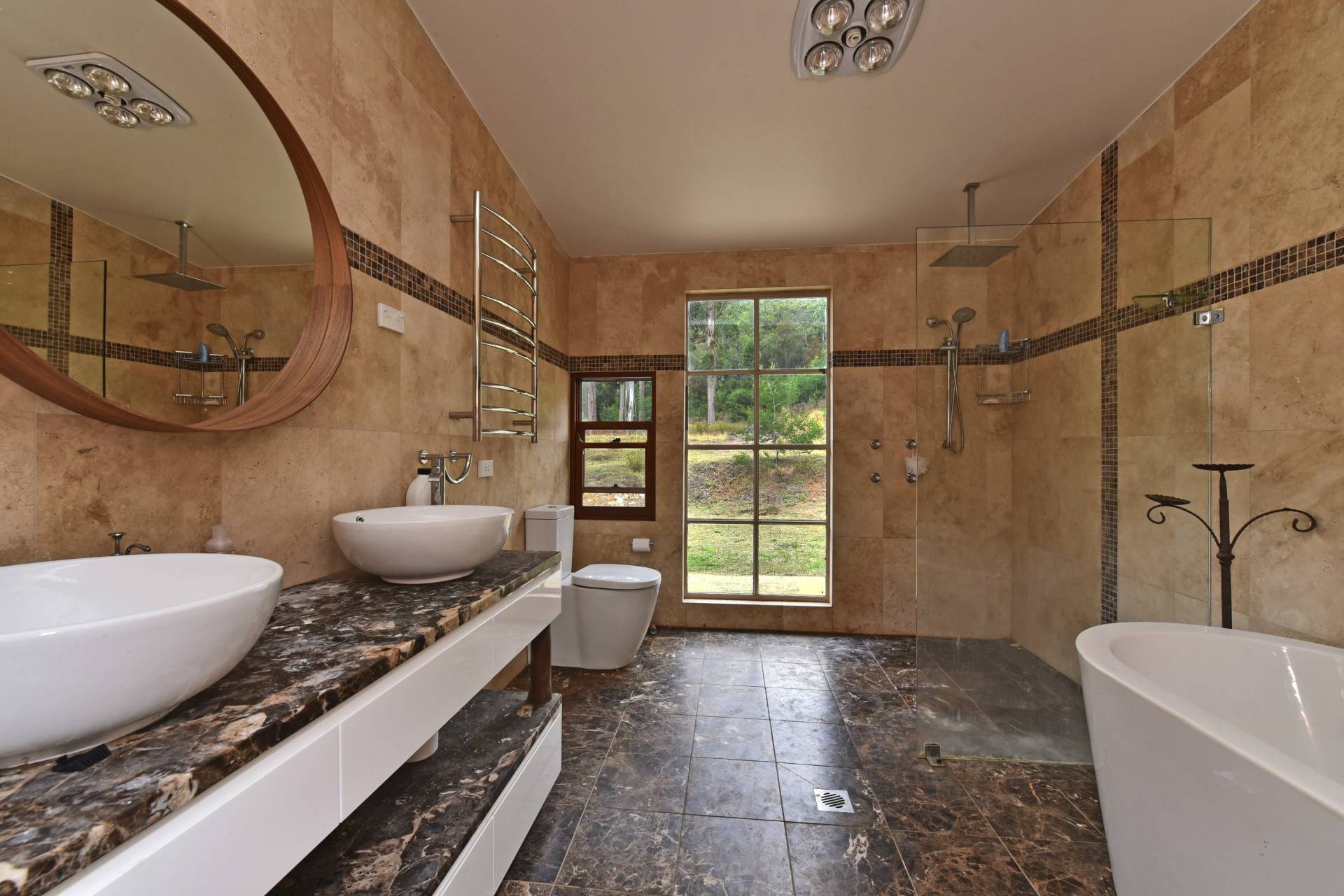 A massive master bedroom, two secondary bedrooms plus outdoor art studio with its own powder room, a mud room/study nook, glamorous bathroom with heated towel rack and marble top vanity plus internal laundry complete the internal floor plan of this masterpiece…Step outside onto an enormous deck with many unique features including an outdoor shower, sunken spa bath, huge under cover outdoor entertainment area…the list goes on. Exposing fantastic views to the bushland mountains of the National Park, it is truly a special place indeed. Other features include an oversized carport and a large under house storage area.