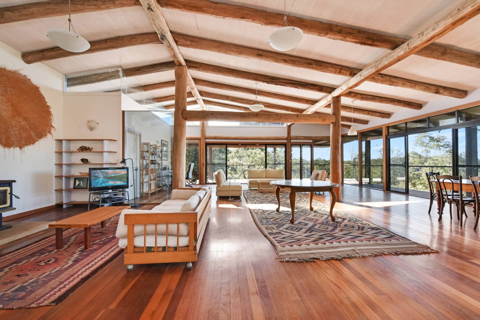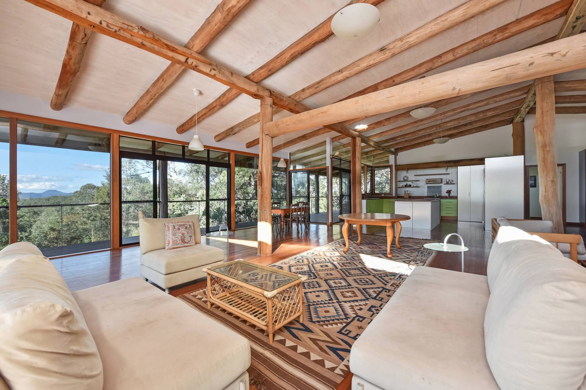 Set upon 173 acres (70.24ha) in an elevated position, this gorgeous 'architect-designed' timber constructed home has magnificent views to the distant mountain ranges and beyond. The property offers total privacy with scenic Yengo National Park bush land surrounds, pockets of grassy plateaus and stunning rock features which can be appreciated from the extensive walking trails around the property.