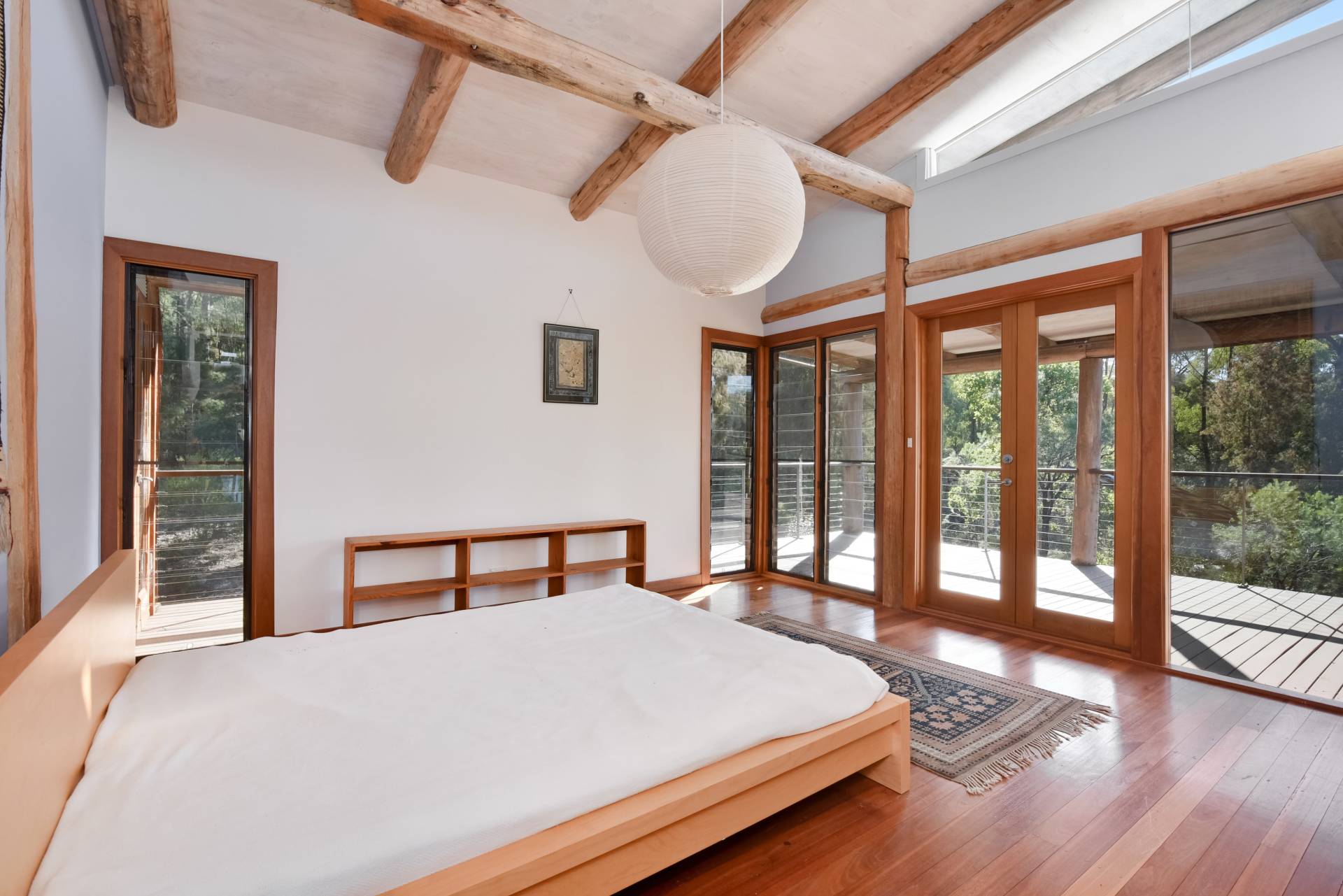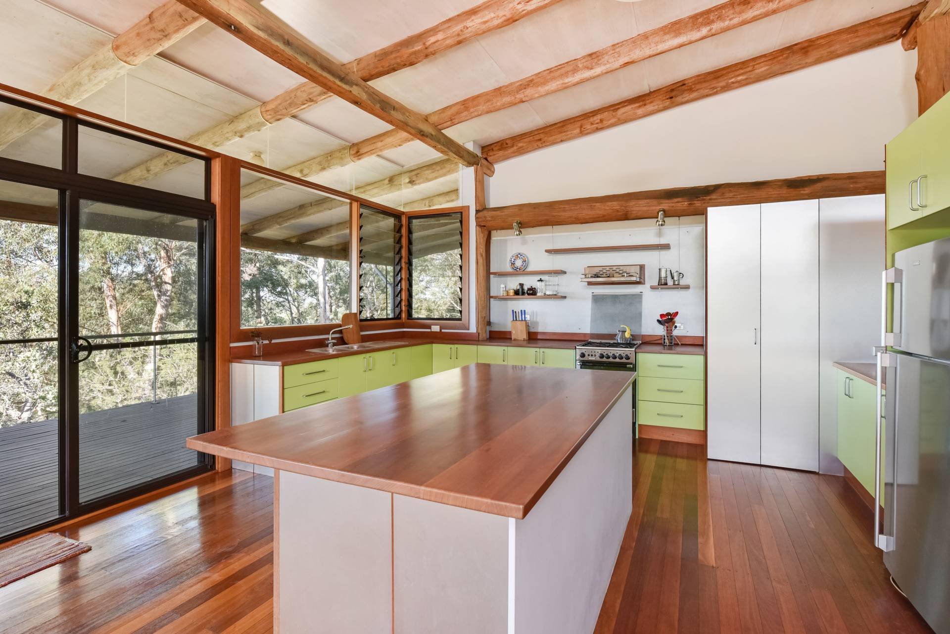 The well-constructed country style home comprises open plan living and a generous size kitchen, one contemporary bathroom and a second laundry/bathroom with separate toilet, three light-filled good size bedrooms and large wrap around verandahs to enjoy the stunning views. Full of character throughout the features of the home are endless. High ceilings with solid timber beams and polished timber floors add to the spacious yet cosy modern country feel of the home. A slow combustion fire place is a central feature of the open plan living area, perfect for the winter months. Double glazed windows surround the home to take advantage of the magnificent views which fill the home with light through-out. A complete sprinkler water system has been set up on the outside of the house and provides a barrier for bushfire protection.
